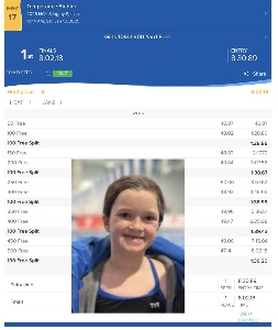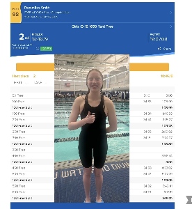 CONGRATULATIONS to Rosie Smith for breaking the old team record for 15-18 Girls in the 1650 Freestyle with a time of 18:46.09.