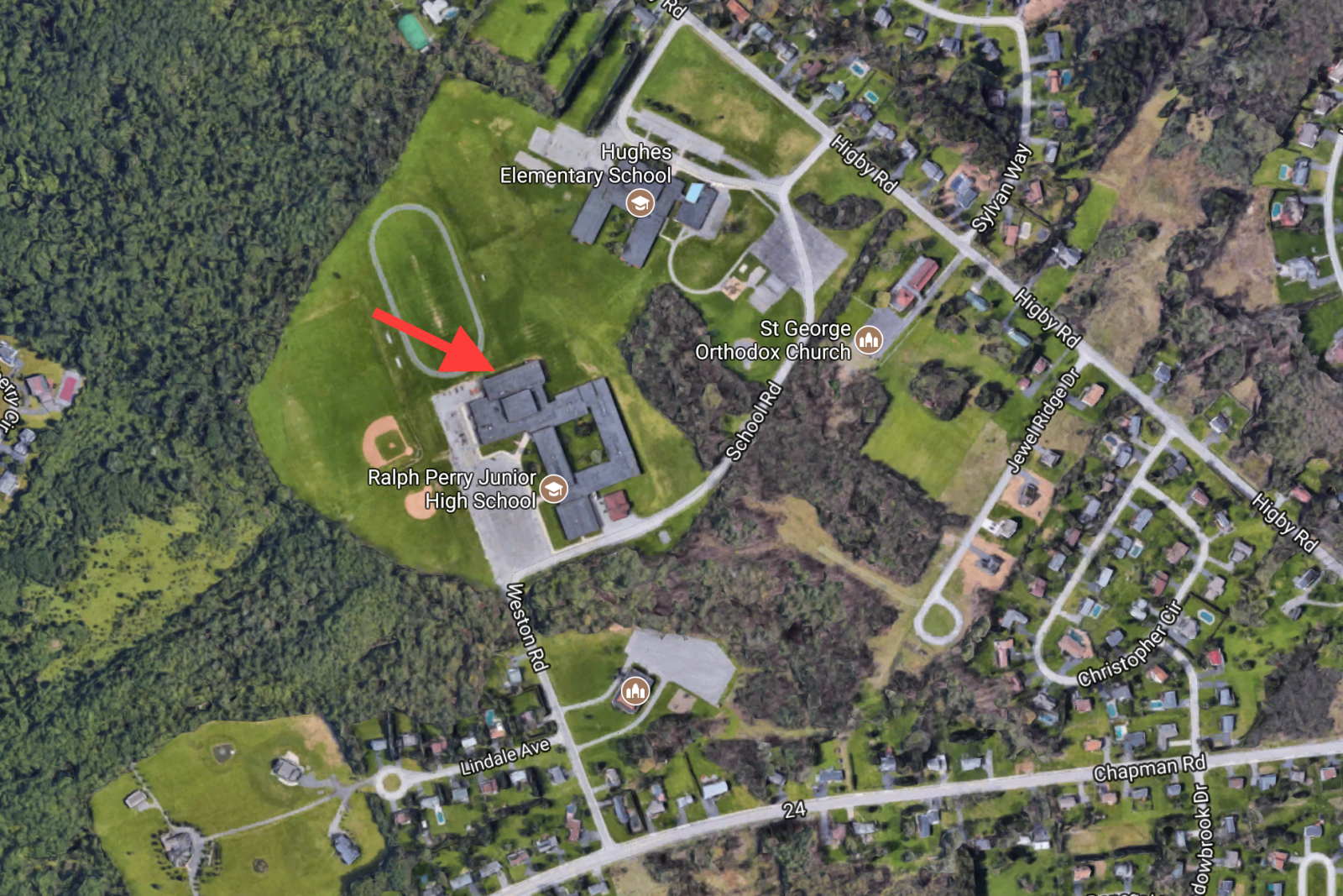 Directions from Genesee Street: Turn onto Oxford Road. Take the first left directly before passing Bradley Elementary. You will drive past the basketball courts, elementary gymnasium and band rooms. The pool has two sets up stairs leading to the bleacher area. Enter through the set of doors closest to the tennis courts.