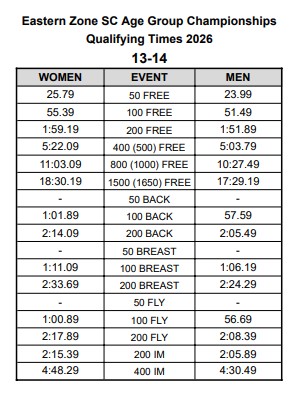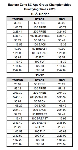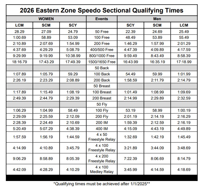 • Eastern Zone Qualifying Times