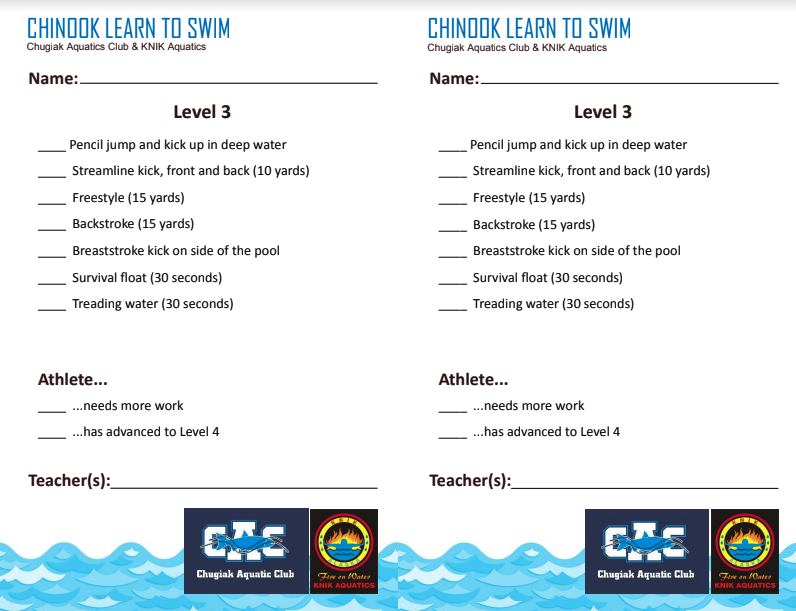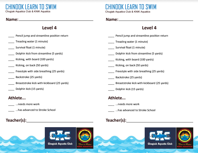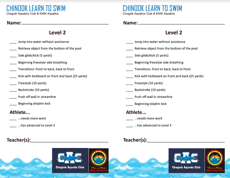 Note: Lessons are offered by CAC instructors through KNIK Aquatics. During your child's time in lessons you will be a part of both organizations. There is no additional cost to be a member of KNIK Aquatics but you will receive correspondence from this organization.