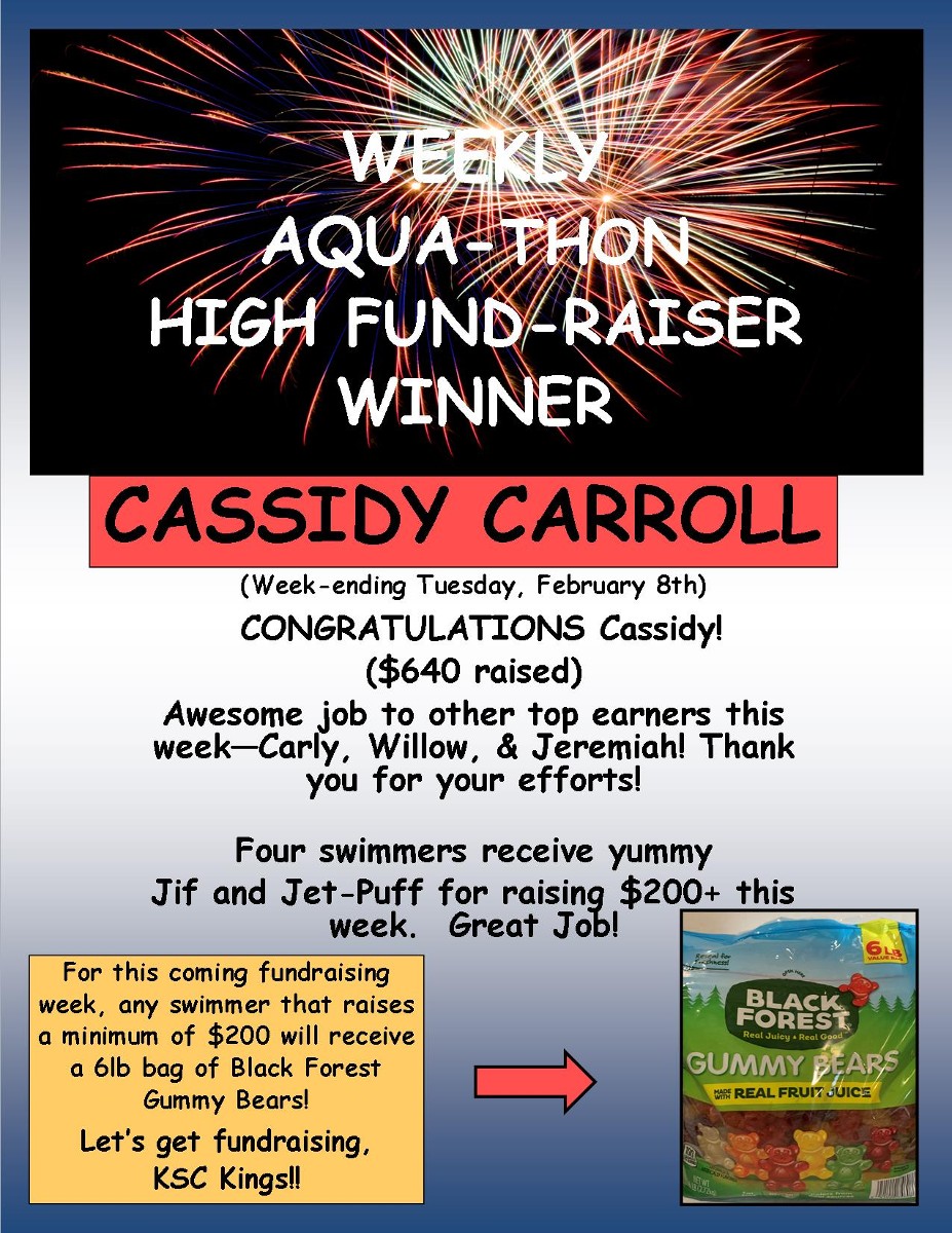 So, please get out there and fundraise, KSC Kings, to rally behind your swim club! Thanks so much Everyone!