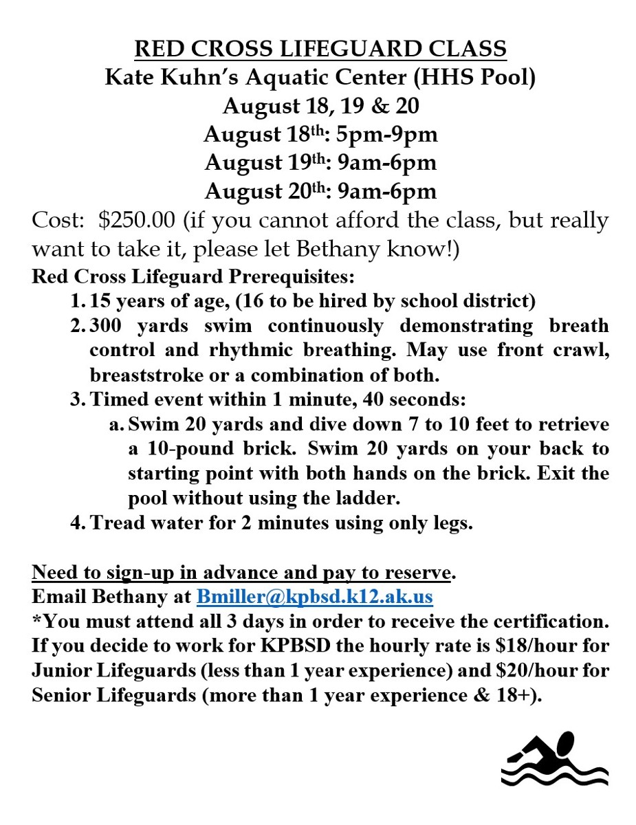 Bethany will be having a LG class, August 18-20th. If you have EVER been a lifeguard before, or haven't, but are interested in taking the class and working, please email Bethany at [email protected]. She will need help with various hours during the week and with rentals on various Saturdays. Especially important for KSC, we will need lifeguards in order for us to run our Novice Program and competitive swim team.
