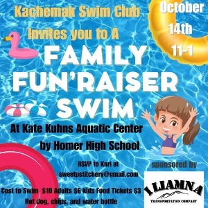 Hello awesome Kachemak Swim Club families, Thank you so much for your patience as we needed to adjust our typical fall swim schedule. Kachemak Swim Club is excited to announce our online registration (www.kachemakswim.org) that will start on 4 October 2023 for returning Smolt, King, and Dream swim team swimmers! *Please note: this is not the Novice Program registration. If you are a returning swimmer and register before October 20th you will receive your choice one FREE fun swim cap. Registration will open for new members on October 23th. If...