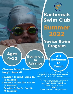 Hi Swim families! We are happy to announce that our registration for our Summer 2022 Session 2: June 20-30, 2022 is now open! If you have a credit from previous cancellations, you must contact me directly (before signing up) so I can sign your child up using your credit. To register, go to www.kachemakswim.org, Novice Program, Novice Program Summer 2022 Registration, and scroll to the bottom of the page where you see drop down box with “Summer 2022” written in blue. Click on the “Summer 2022” and choose your class...
