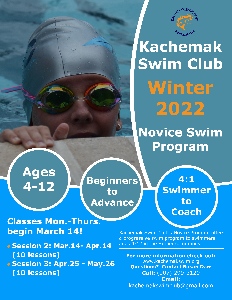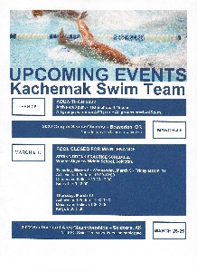 Just a few reminders: Kate Kuhns Aquatic Center is closed this week. Spring Break Practice at SkyView Middle School in Soldotna (see flyer for times) Sign-Up for SCA Championship swim meet in Soldotna March 25-26, 2022 Volunteers (timers) needed for SCA Championship swim meet. If interested email Kristin Fry at [email protected]. Hope everyone has a great Spring Break!