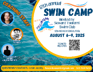 12th Annual Seward Tsunami Swim Camp August 6th-9th, 2025 Join Coaches Abbie Fish, Lindsay Grogan and Solomon D’Amico in beautiful Seward, Alaska. (More Coaches and Olympians will be announced soon.) Registration is now open for both the Junior and Senior Camps. On August 9th we are hosting the Swim Like A. Fish Pentathlon for all campers. Details can be found on the STSC webpage. Any questions - contact Leslie Jacoby, 303-304-7832 [email protected] https://www.gomotionapp.com/team/akstsc/page/events#/team-events/upcoming