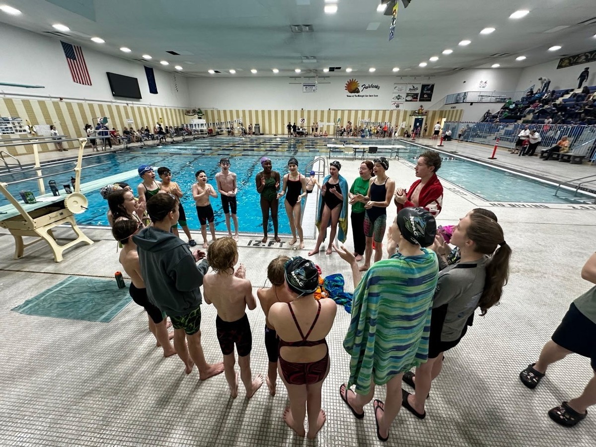 The morning of a swim meet, once you have a heat sheet, you will want to write your swimmers events, heats, lanes and what they are swimming on one of their arms with a Sharpie. (Don't worry, they think it is cool to have a temporary tatoo to show off to friends at school on Monday but it will be gone after a few showers!) The above picture is a sample of how to write on the arm. If you have any questions, please see a coach or a board member!