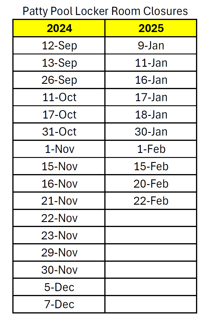 Patty Pool Locker Room Closures