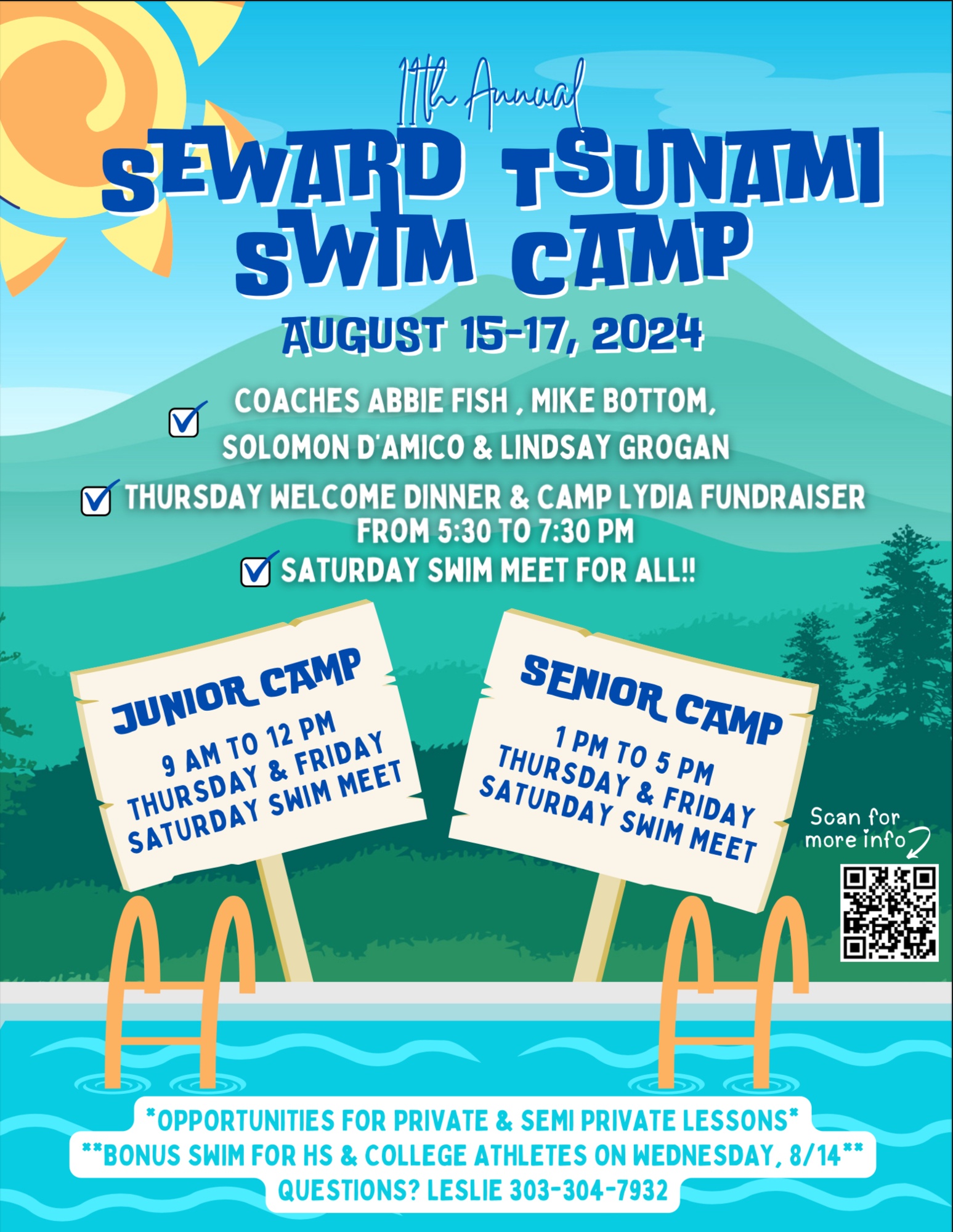 We have just launched our 2024 fundraiser for the CAMP LYDIA FUND! This 70+ year old fund is a tribute to Seward’s Olympic Champion! The intent of the fund is to benefit High School aged swimmers through camps, clinics, scholarships and outreach.