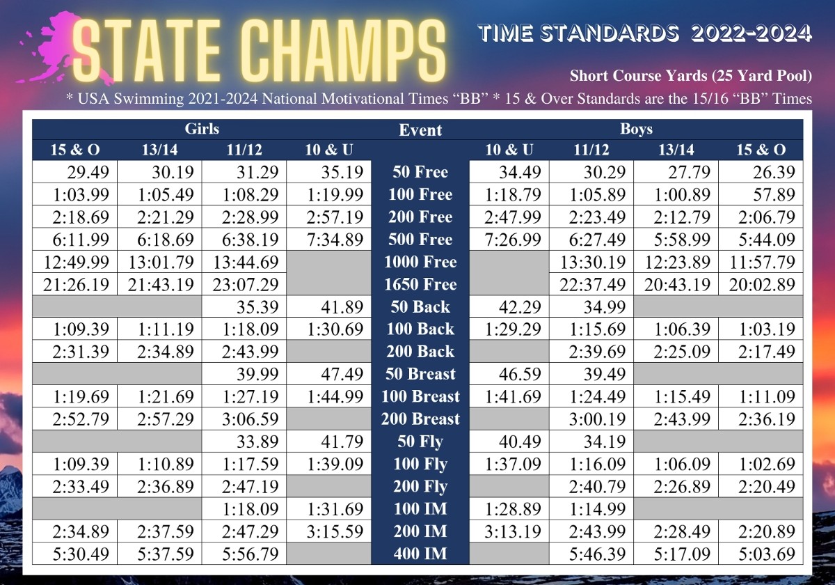 | 1 | 100 Free | 1:04.12Y | Times | P | 04/26/2025 | 2025 Alaska Swimming State Cha |