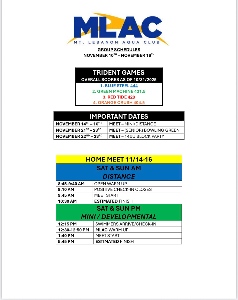 Hello MLAC family, I will keep the laundry list short this week as we have our first home meet this weekend! Meets Home Mini/Distance...