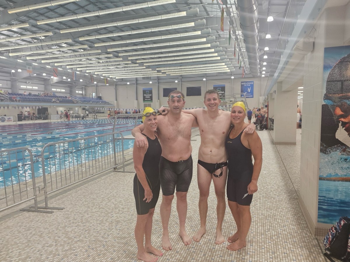 Mixed 200+ age group 200 Medley Relay, 1st place (Chiappetta, Pichette, Petyek, Caves) 2:18.86