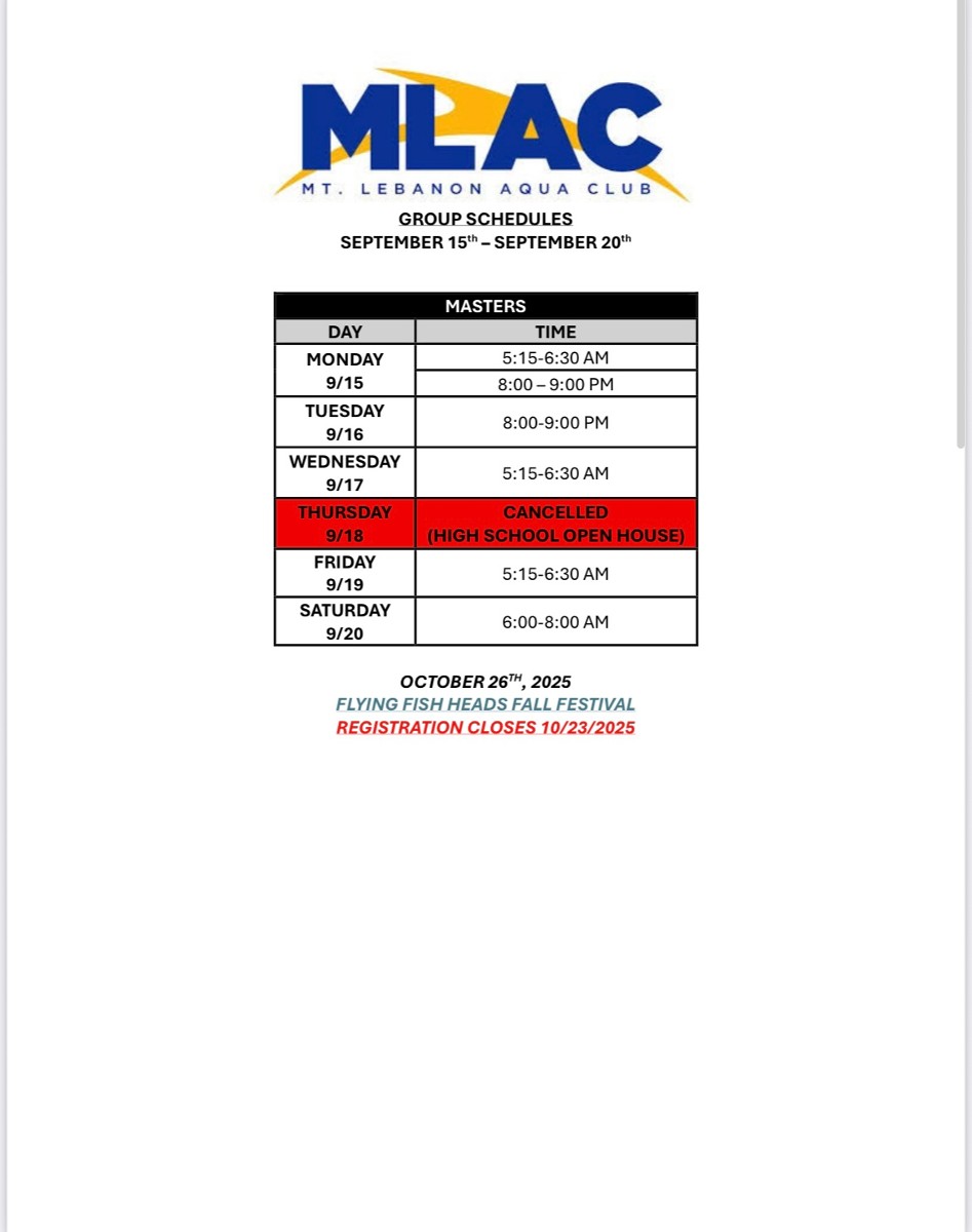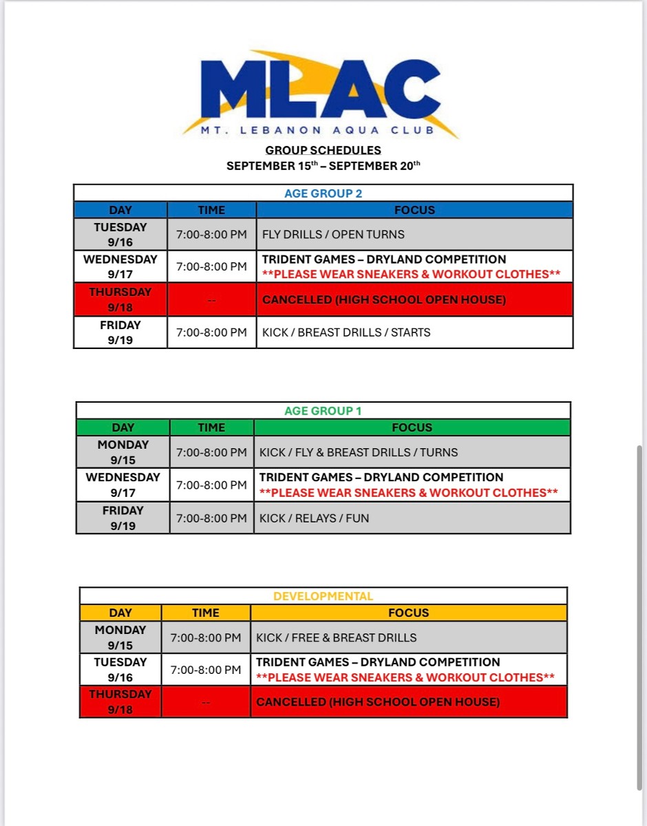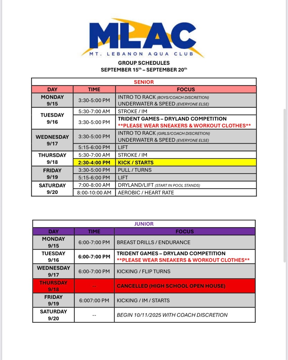 This week's scheudle has been revised to accommodate for the High School Open House. The schedule for Thursday, September 18th, 2025 shas been updated. My apologies for the confusion.