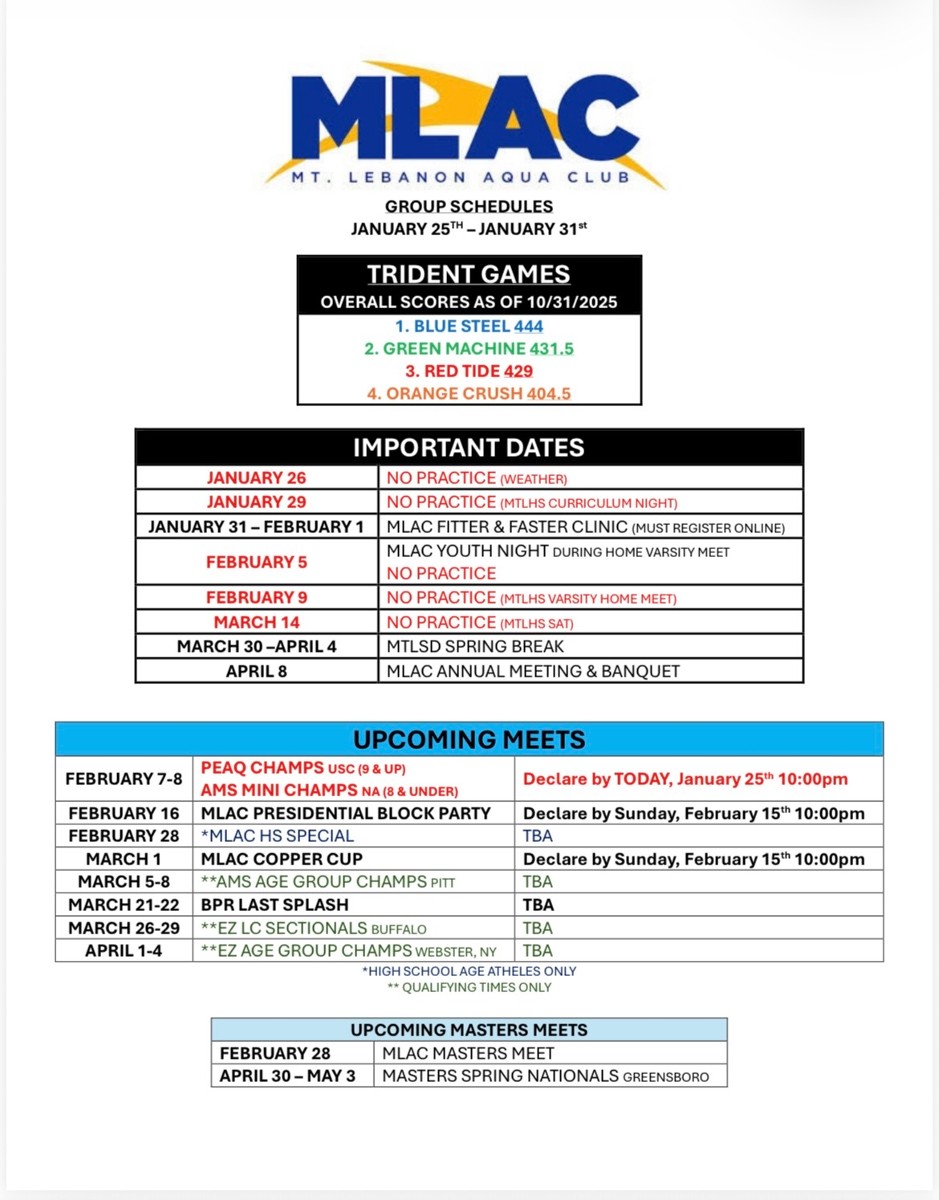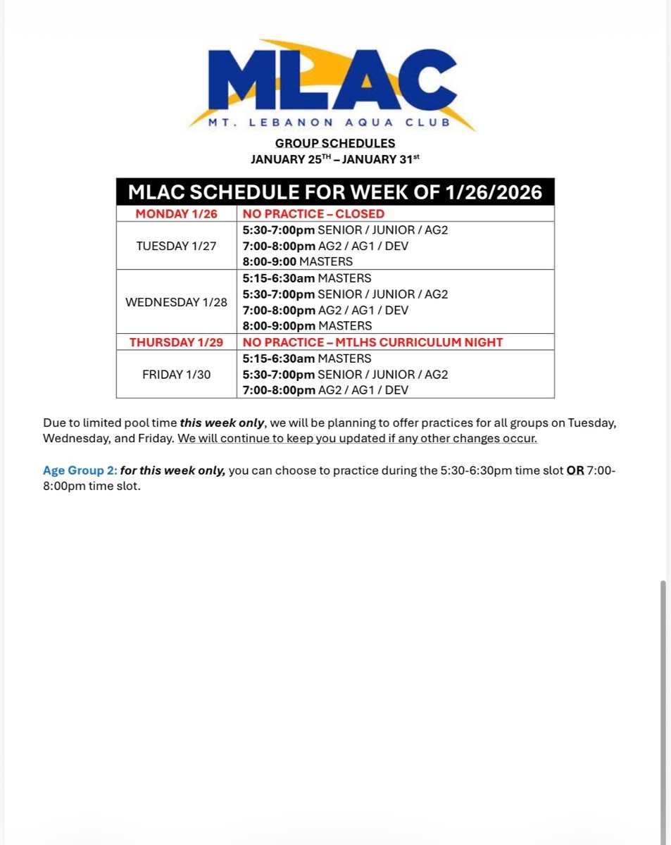 Practice Schedule - Week of 1/26/2026