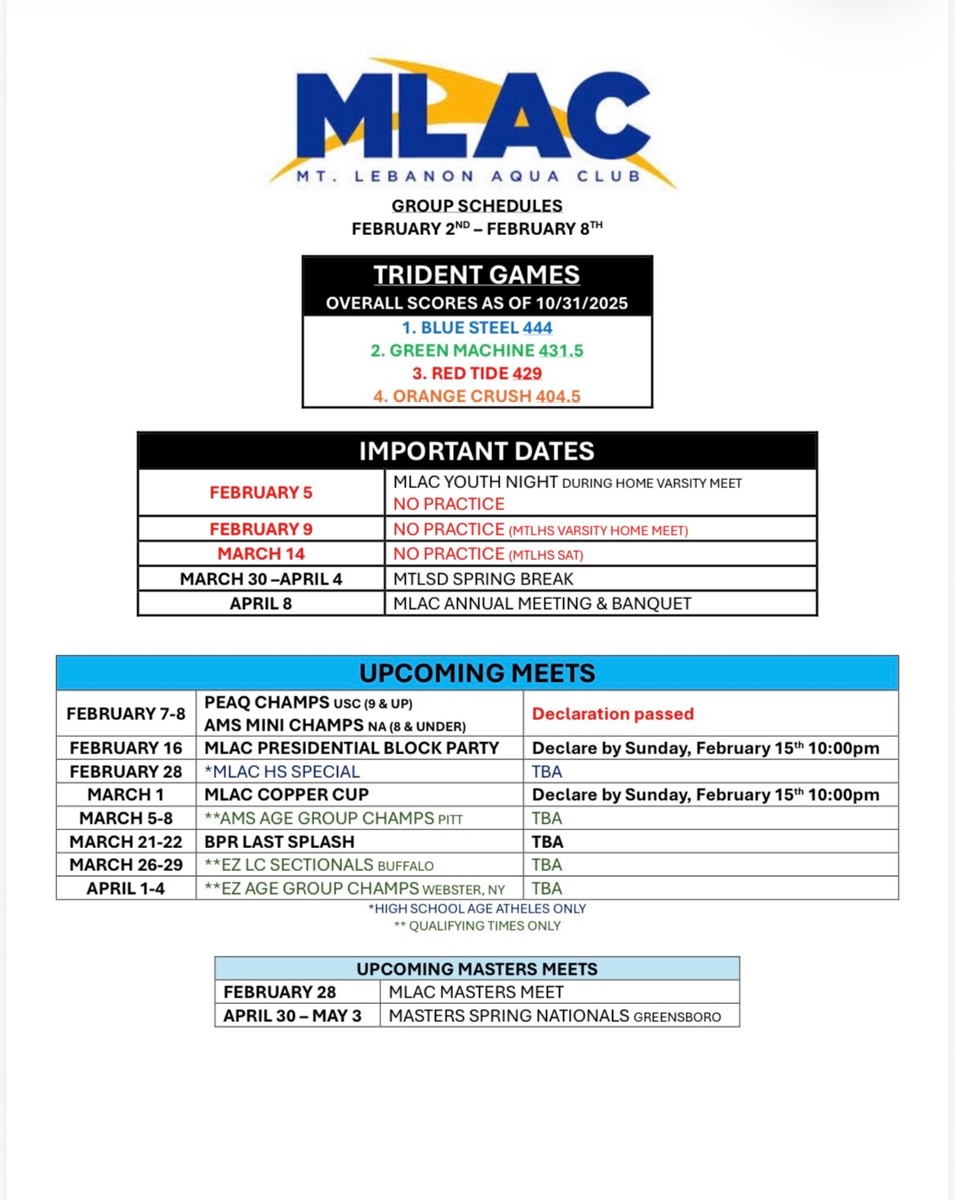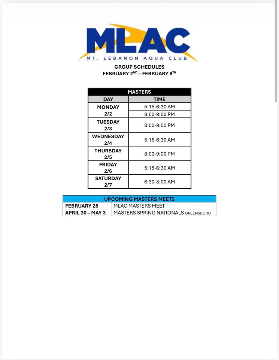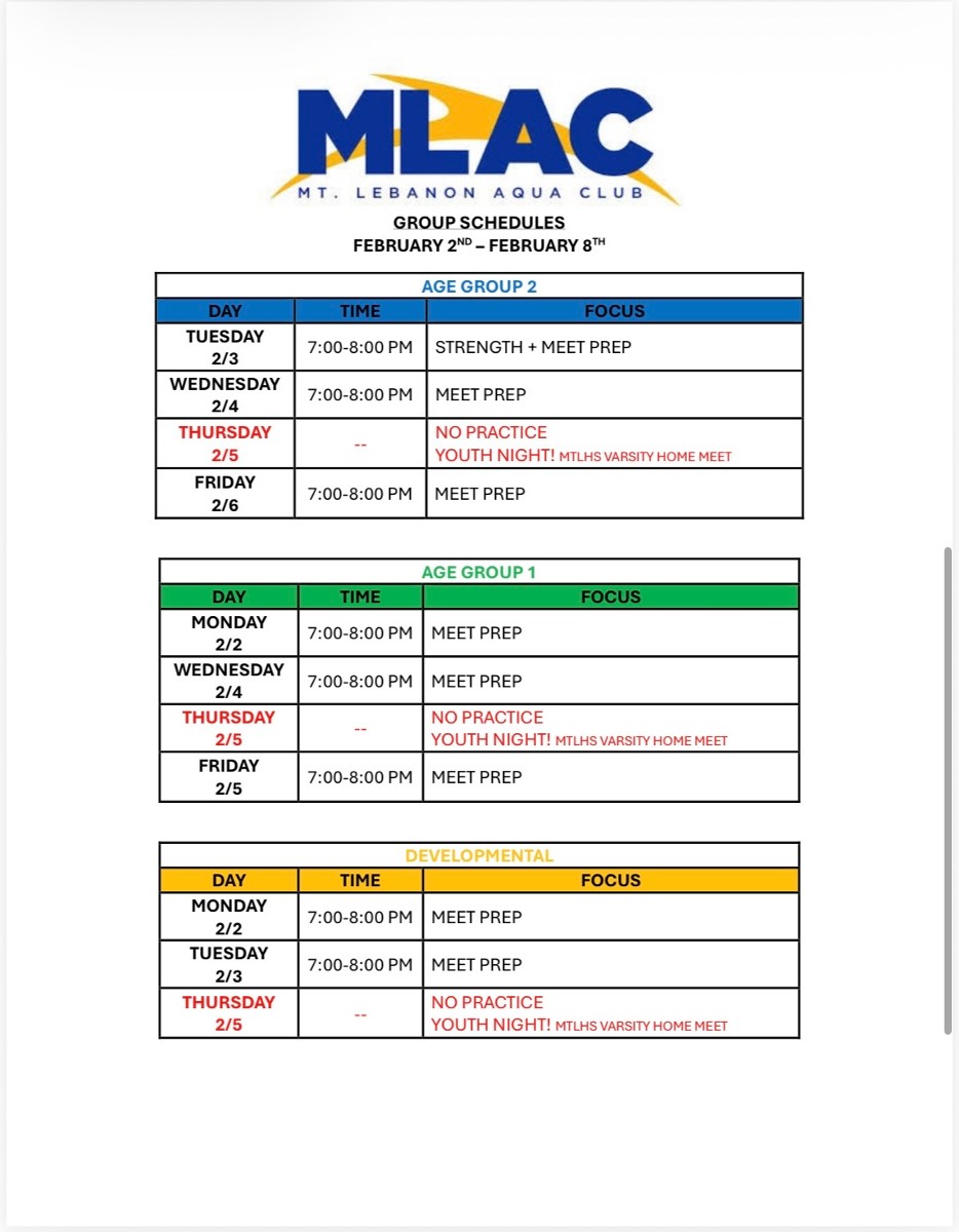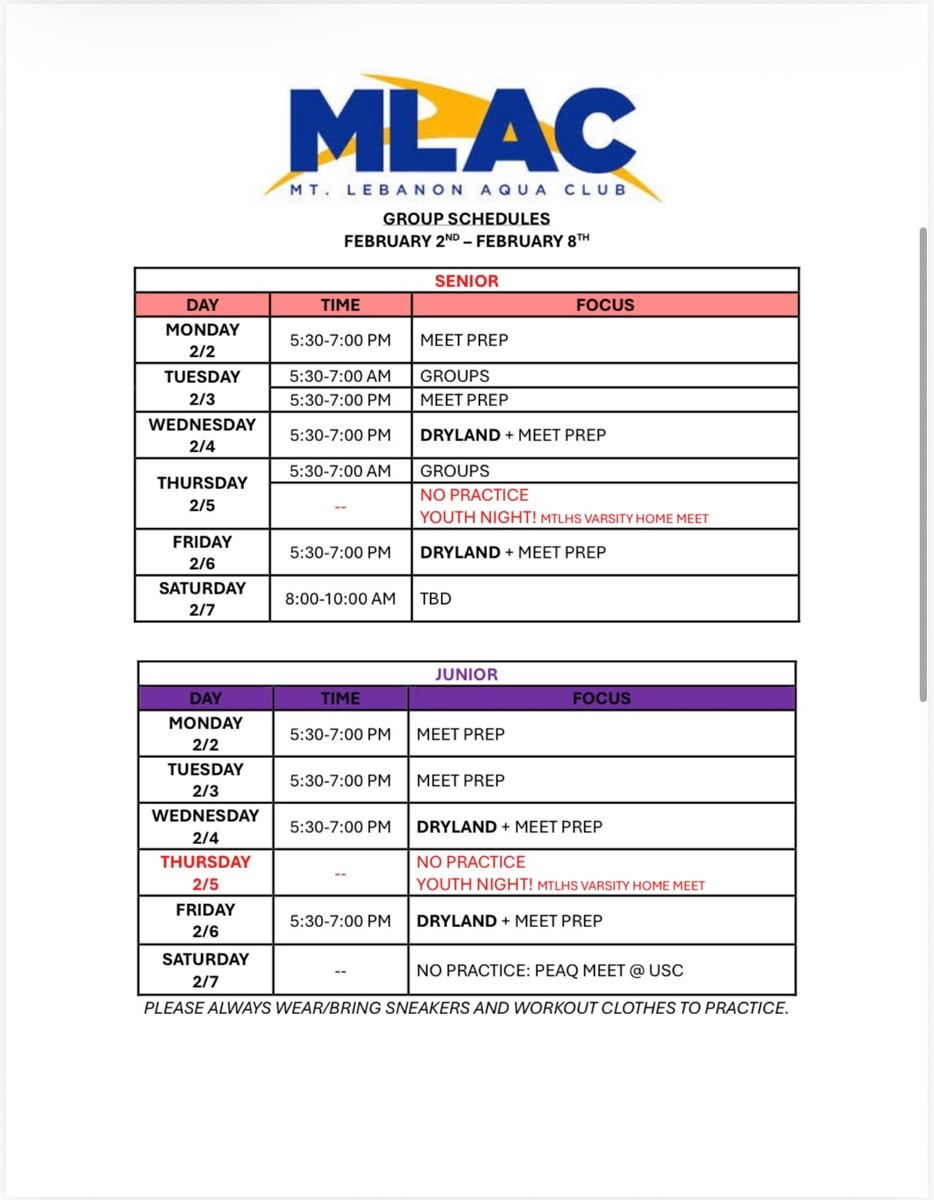 Practice Schedule - Week of 2/2/2026