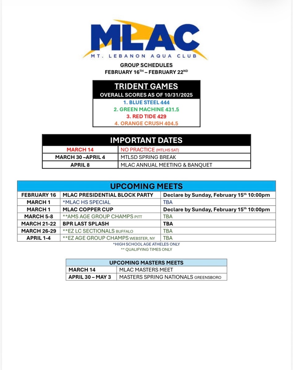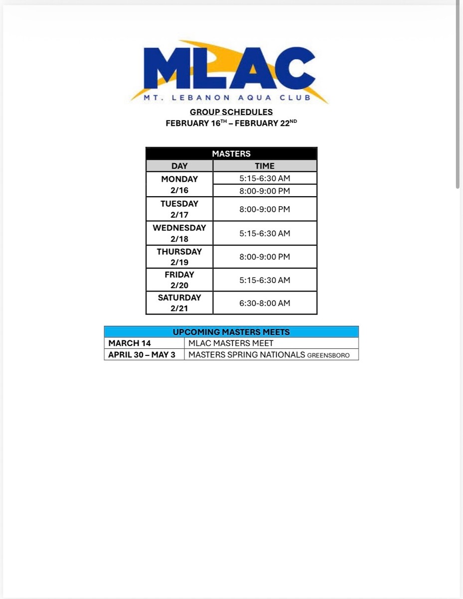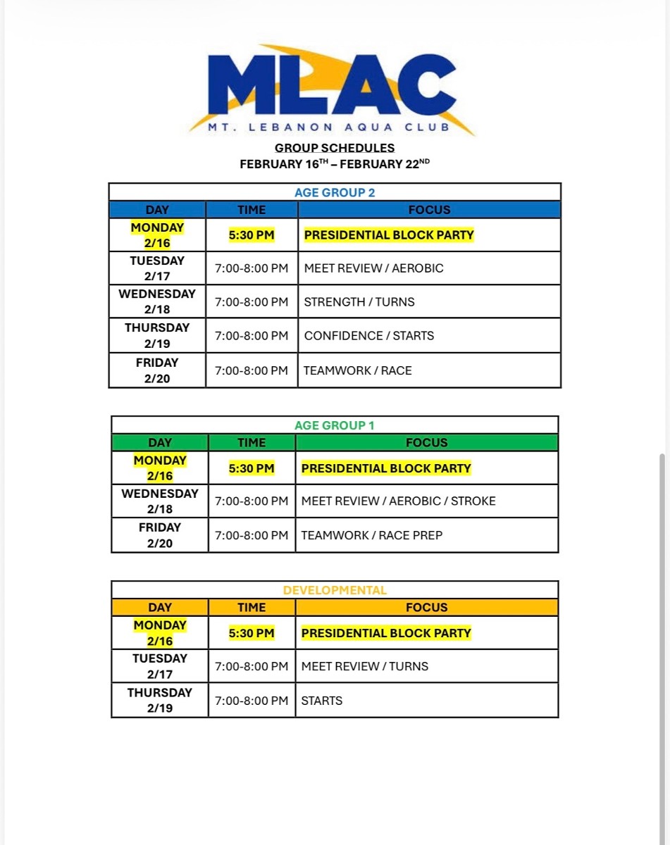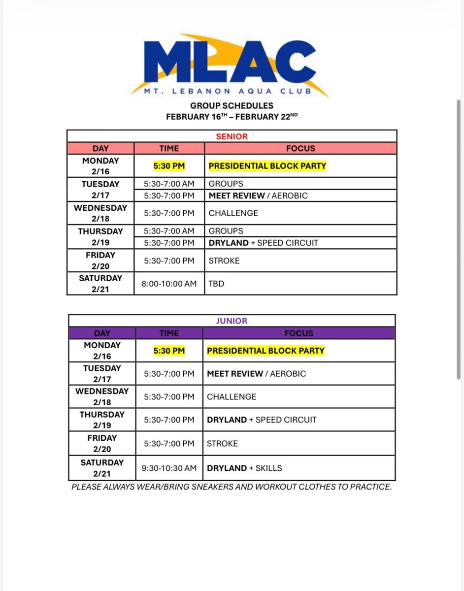 Practice Schedule - Week of 2/16/2026