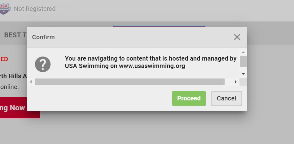 7. Click Red Box - Register for USA Swimming Now