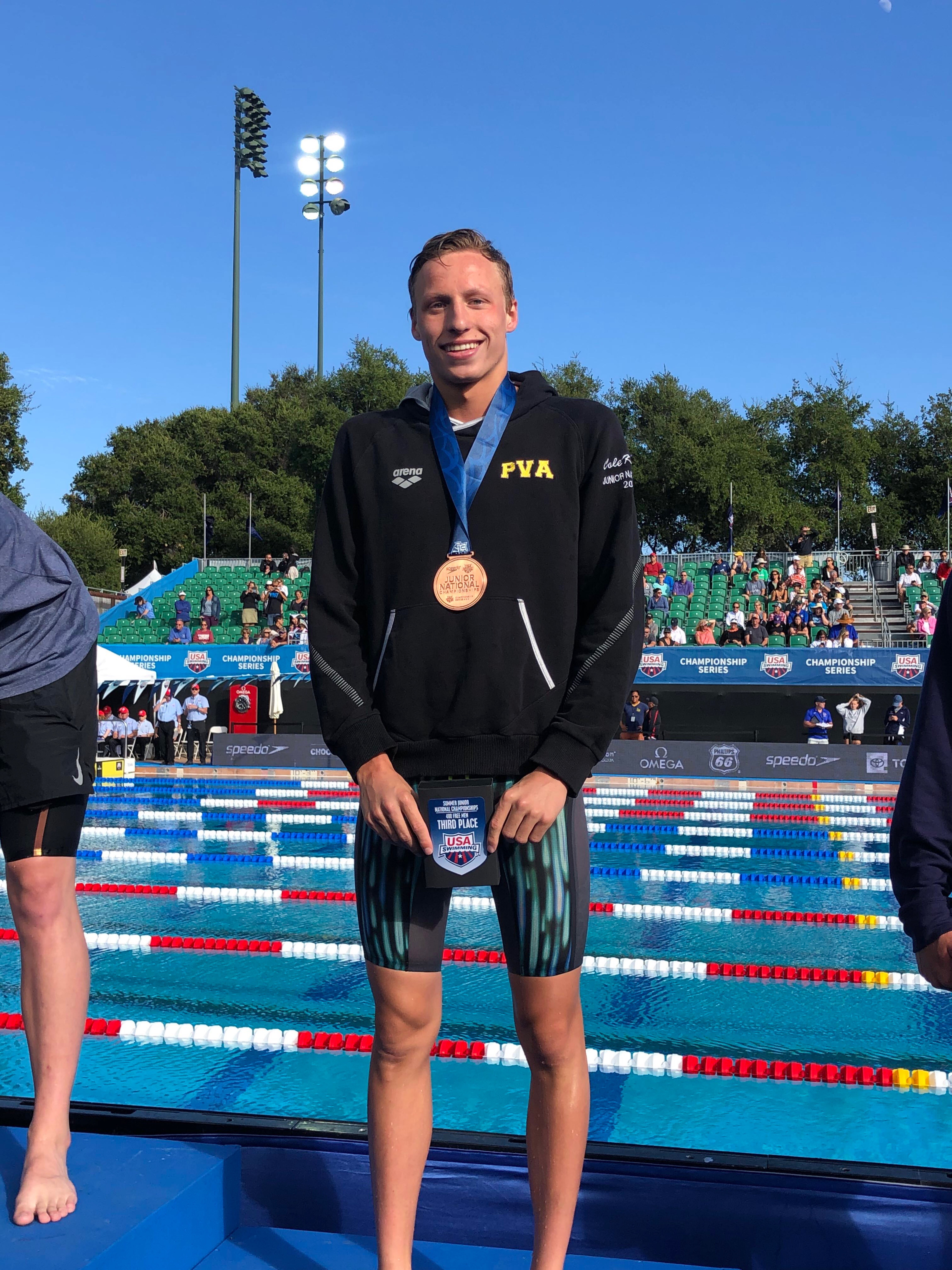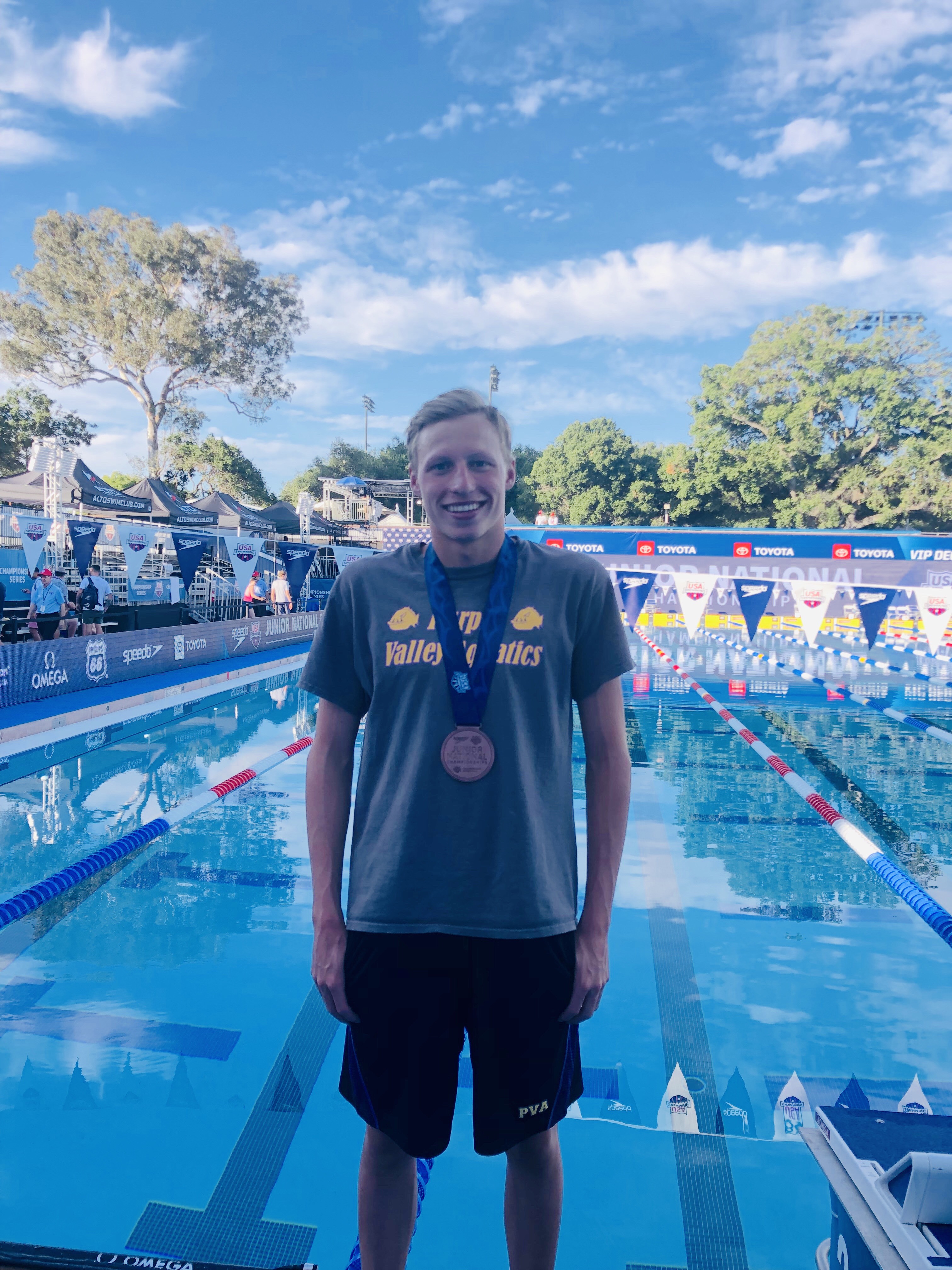 Cole Kuster of Purple Valley Aquatics qualified for the 2020 Olympic Trials for the United States last week. An incredible accomplishment which less than 1 percent of American swimmers reach in the United States. An incoming first-year this fall at Harvard University, Kuster competed at the USA Swimming Junior Nationals at Stanford's Avery Aquatic Center and qualified for Trials in three events. Hailing from Williamstown, Kuster opened his time in Northern California with a seventh-place effort (15:39.04) in the 1,500-meter freestyle last Tuesday before coming in third two days later in the 400 free (3:55.94). Kuster saved his best performance for last when he was the runner-up in the 800 free (8:07.61) on Saturday. Kuster joined Harvard's list of swimming Olympic hopefuls, which already included Dean Farris of Georgia (50 free, 100 back) and incoming first-years Will Grant of Texas (100 back) and Noah Brune of California (800 free). The 2020 Olympic Trials will be held in Omaha, Nebraska in June of 2020 and is the sole qualifier for pool swimmers on the 2020 U.S. Olympic Team. Kuster will be part of a Harvard program that will look to defend its Ivy title for a fourth straight season in 2019-20 and finished in eighth place at the '19 NCAA Championships.