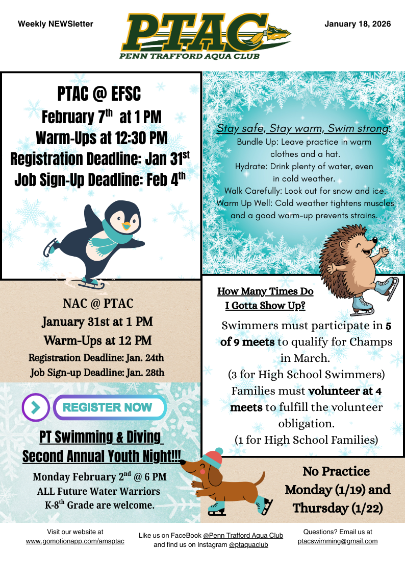 Welcome to January: where the pool is warm and everything else is not. Stay warm and in the know with this week's NEWSletter.