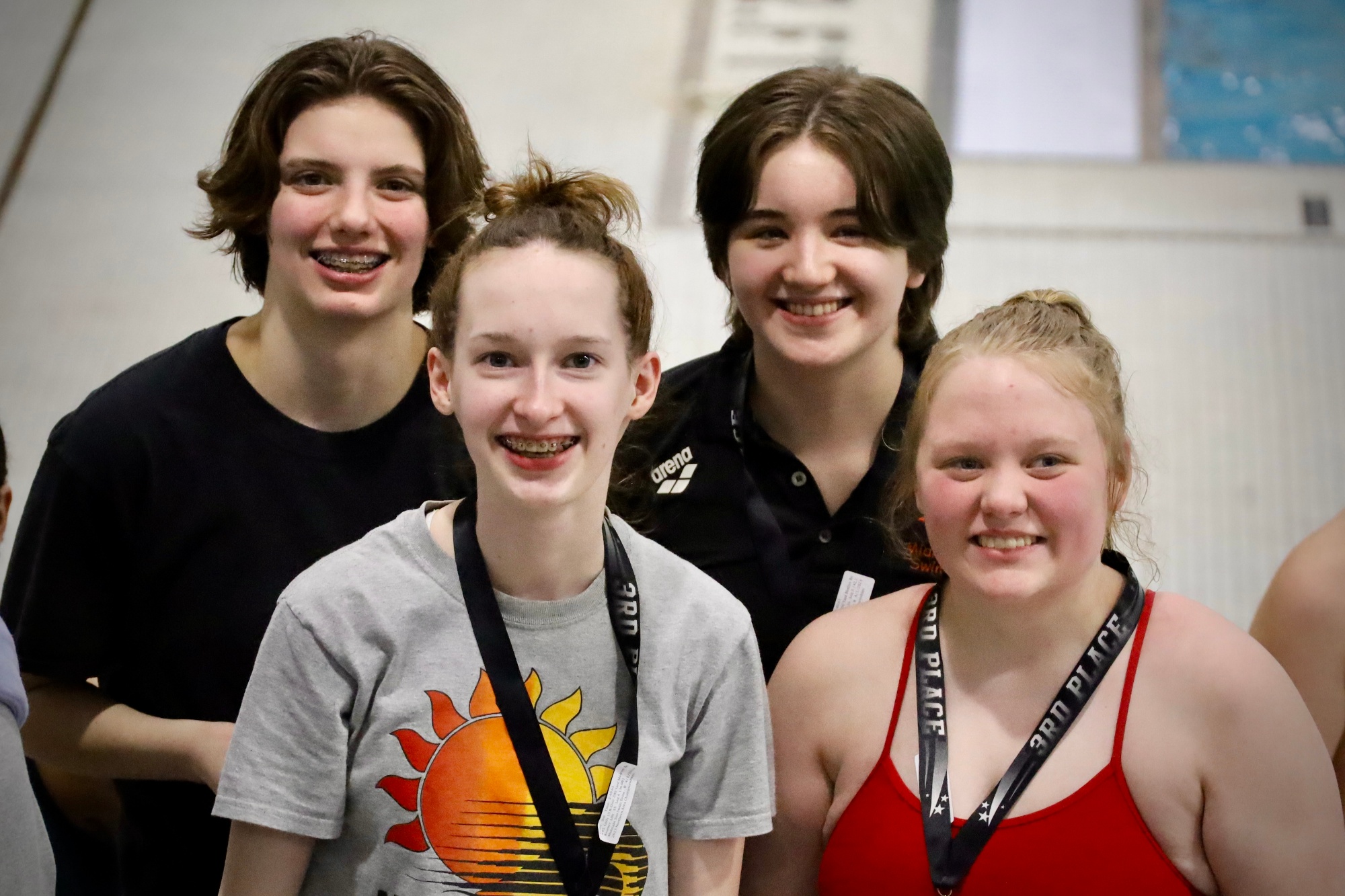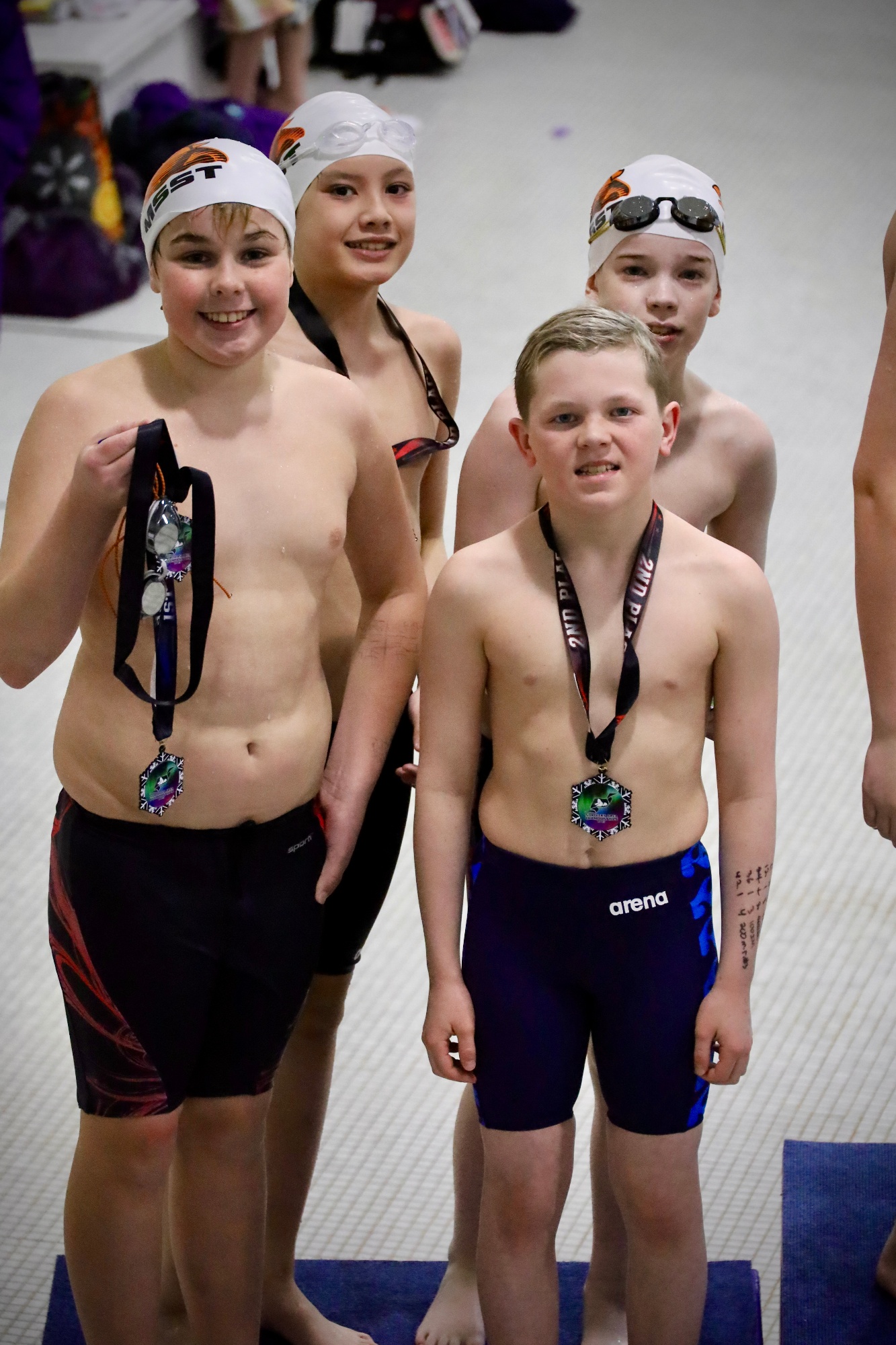 Midnight Sun Swim Team training group structure is outlined below. The goals of the overall program are to develop senior bound and lifelong swimmers from a young age, putting all swimmers in the position to swim in college if they so choose. Technique and great form as well as having fun in the pool are the major emphases in the beginning levels of the program to lay a great foundation for their swimming careers. Performance at meets is the primary driving goal in the later groups. The program is designed to have a group for every ability swimmer from novice to advanced. Athletes are introduced to new training focuses, challenges, and learning topics at each level and earn their promotions to the next tiered group. Education and fun are as much of an emphasis on each athlete as training is throughout their swimming career.