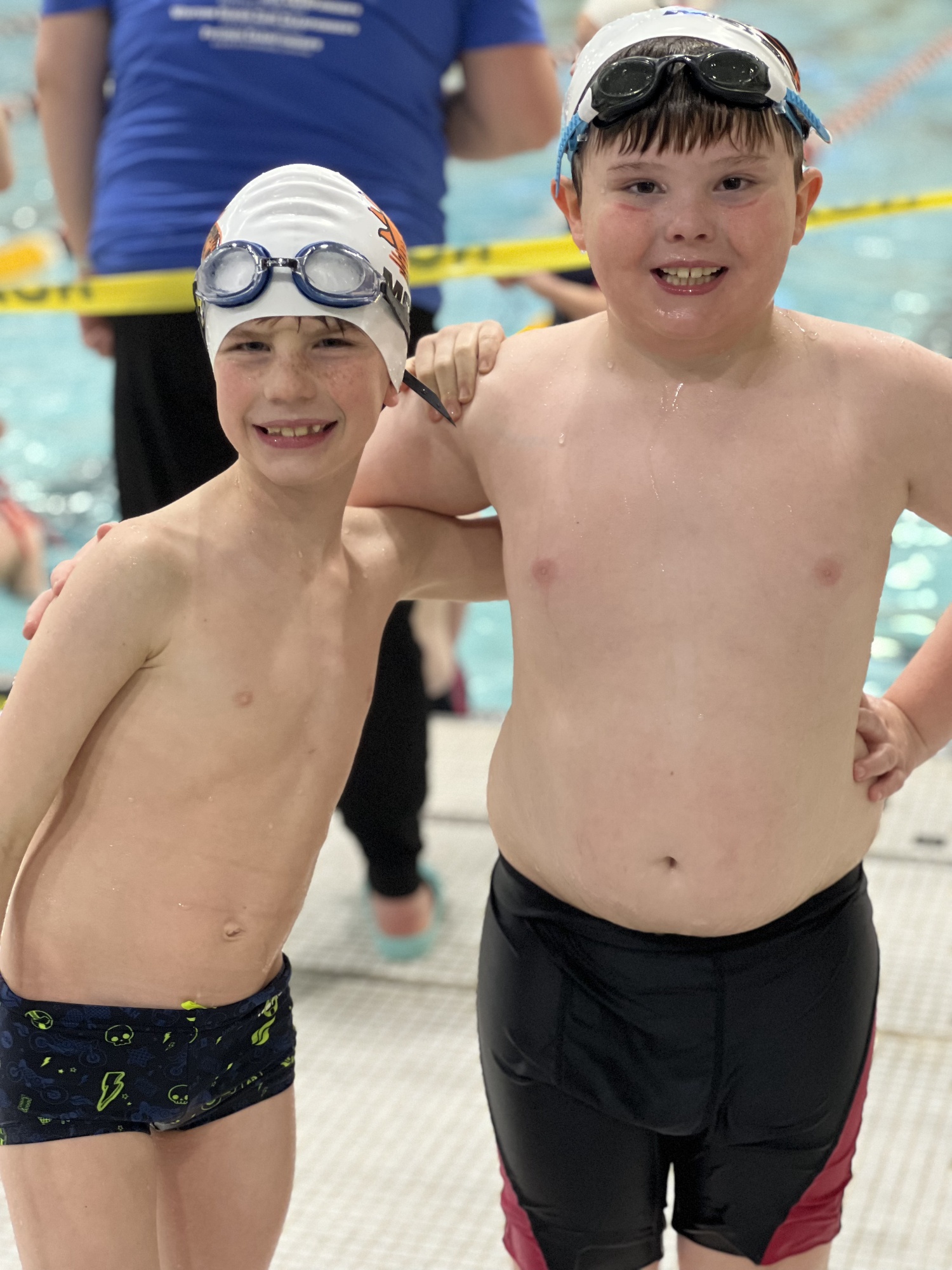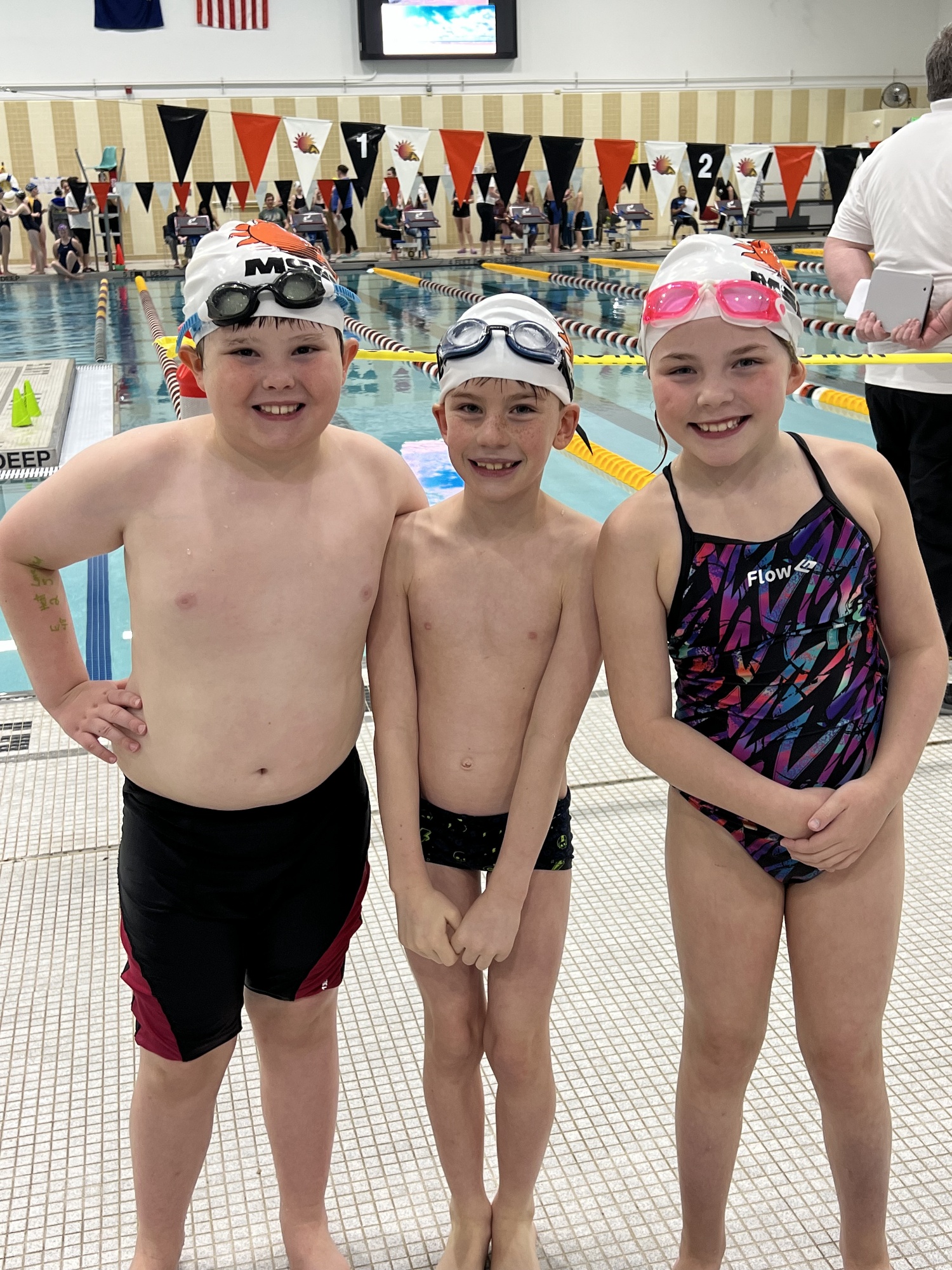 The Solar Flares group is our entry level swimming team group that introduces new young athletes to the world of competitive swimming. This group meets once a week for 45 minutes with multiple day/time options to allow flexibility in busy schedules. Entry into this group requires that swimmers can safely swim one length of the pool unassisted in freestyle and backstroke. Through drills and repetition swimmers in this group are taught proper technique of the four competitive strokes. The exit goal for this group is the swimmer can complete all four competitive strokes legally for 25 yards. The ideal age for this group is 10 and younger but swimmers may be older if needed. Swimmers requiring more instruction and are not ready for the Solar Flares will be placed into the Solar Flares Development group before graduating to the Solar Flares. The Solar Flares have a coach to swimmer ratio of 8:1; our Solar Flares Development have a coach to swimmer ratio of 4:1.