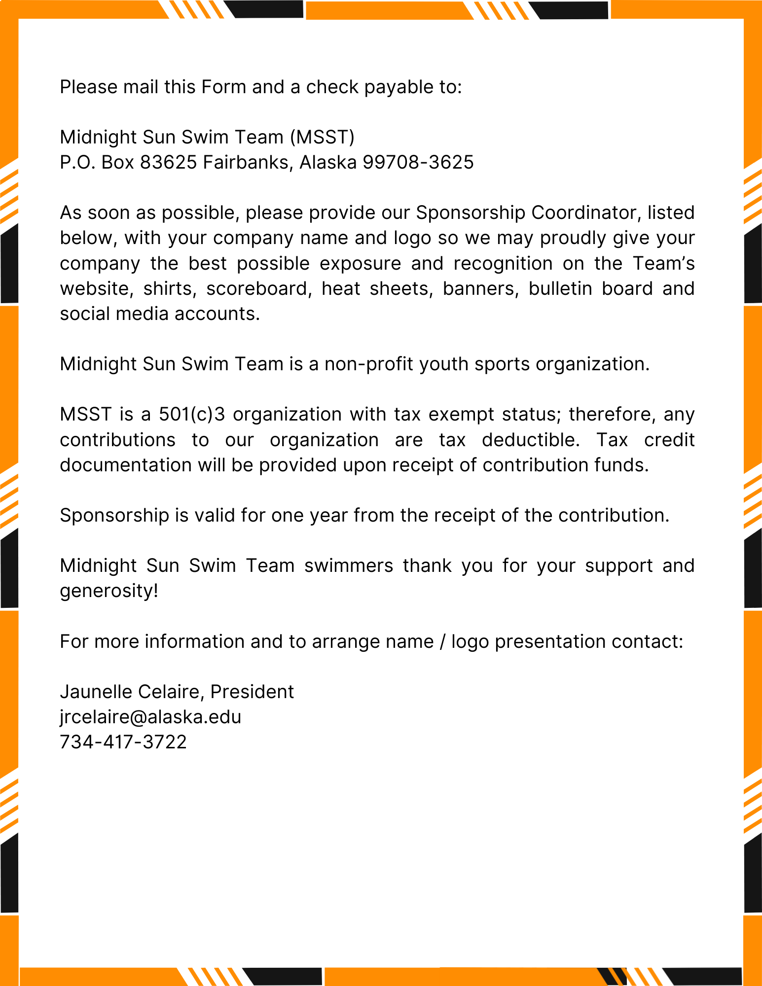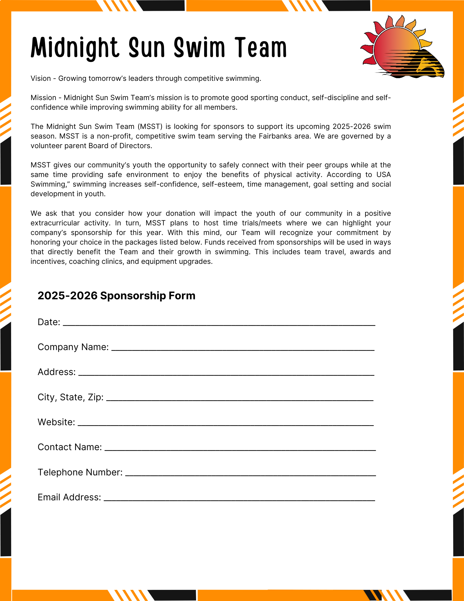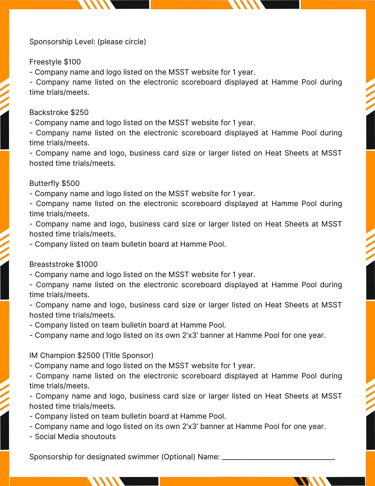 Now that we are starting a new ‘swim year’, I wanted to send you all the current MSST Sponsorship Letter. This is a great opportunity to fundraise and raise some money for the team and yourself!