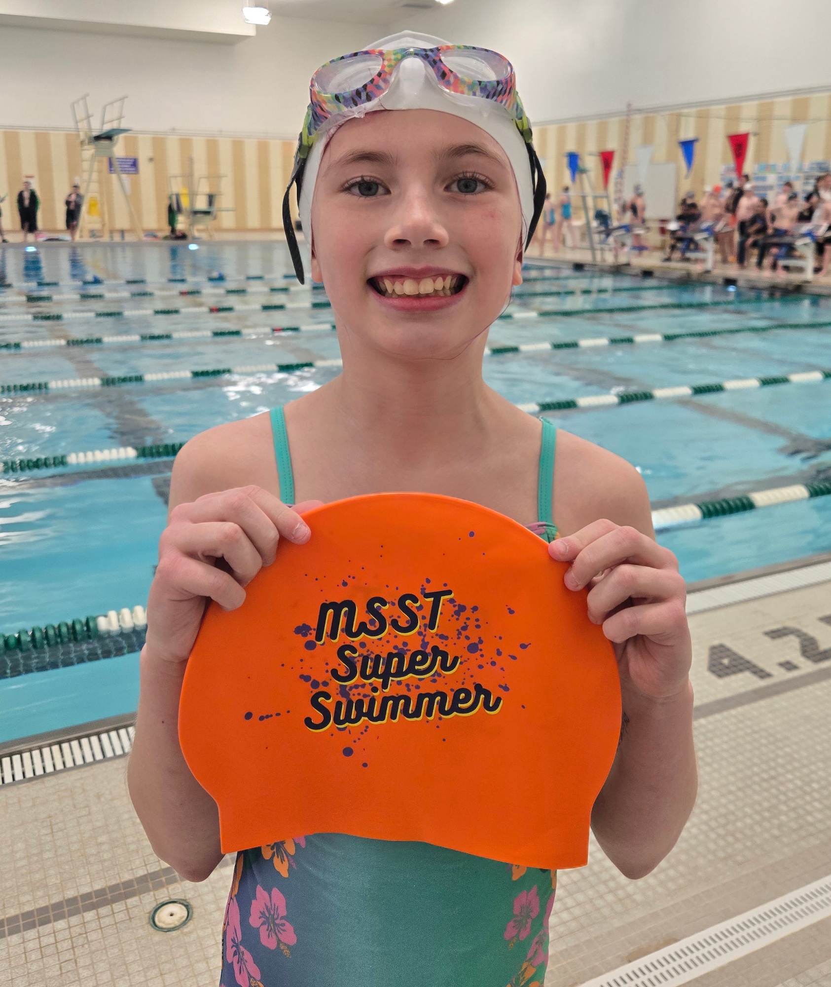 This month's Super Swimmer is Eva! Eva is in 5th grade and her favorite stroke is Freestyle. She says that the best part about swim team is having fun and doing your best. Her favorite snack? Chex Mix!