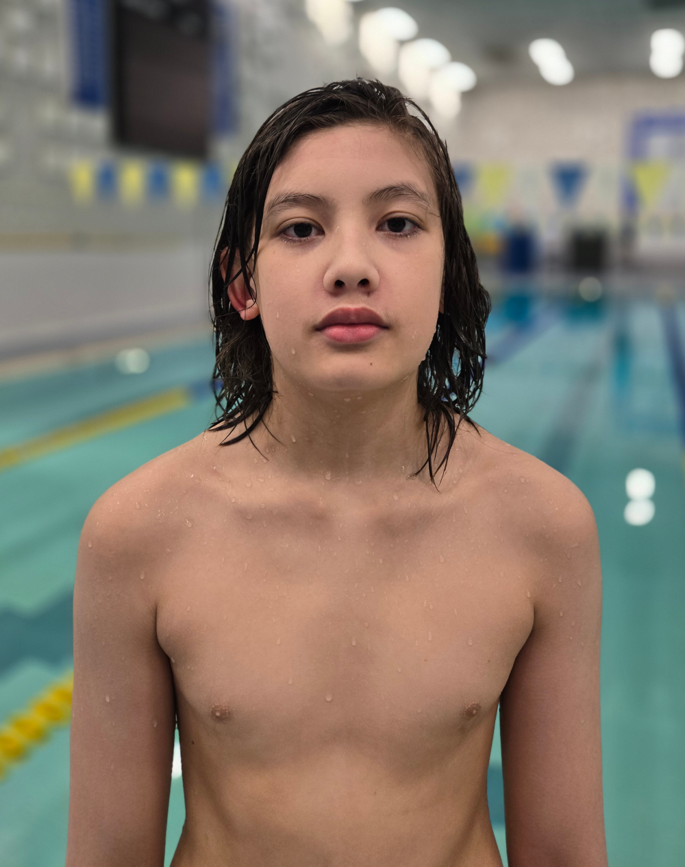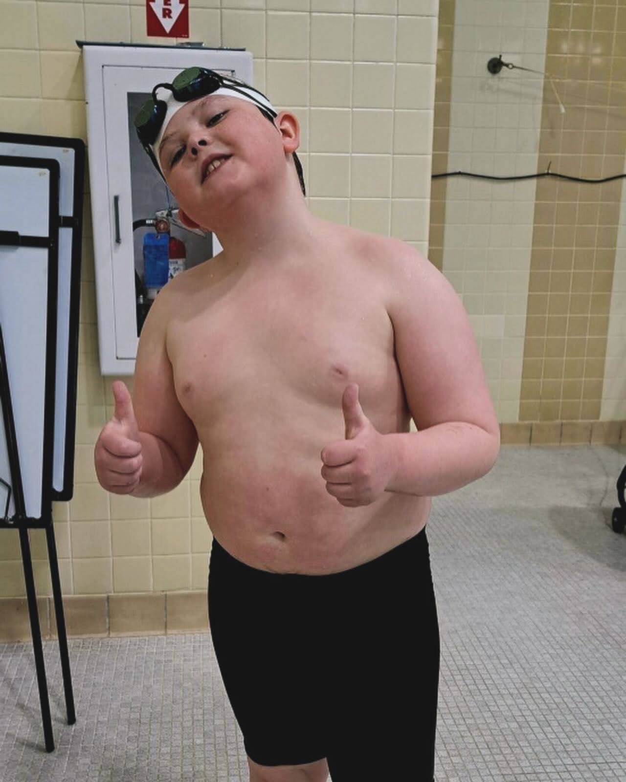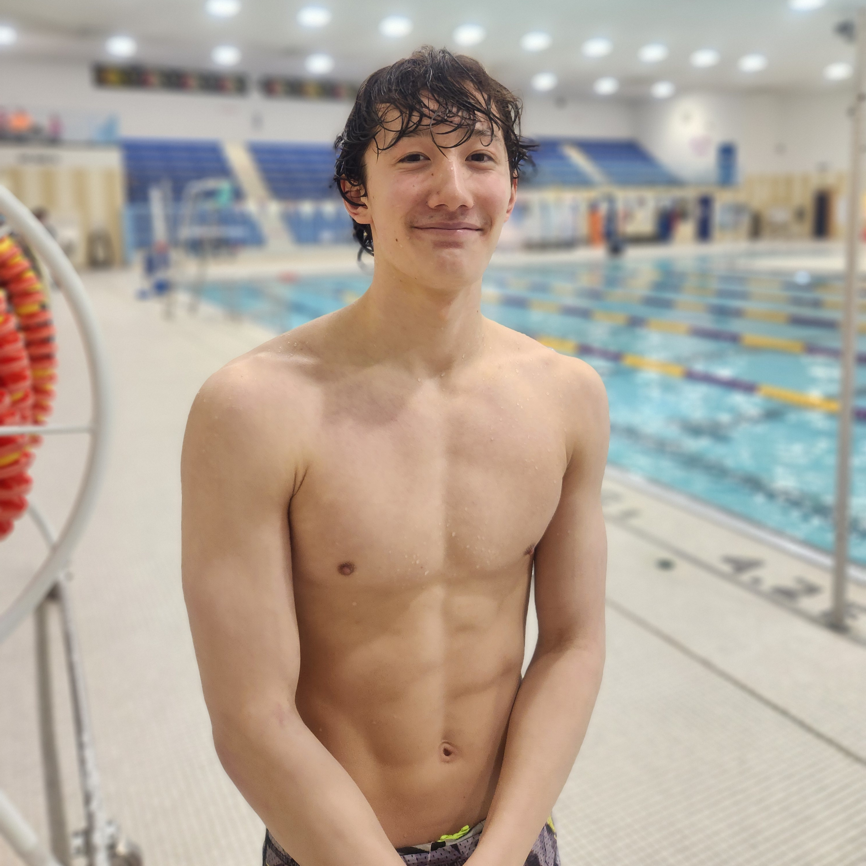 His favorite part of swimming is the adrenaline rush and knows that in order to swim fast, you have to listen to your coaches. His favorite TV show is the Simpsons!