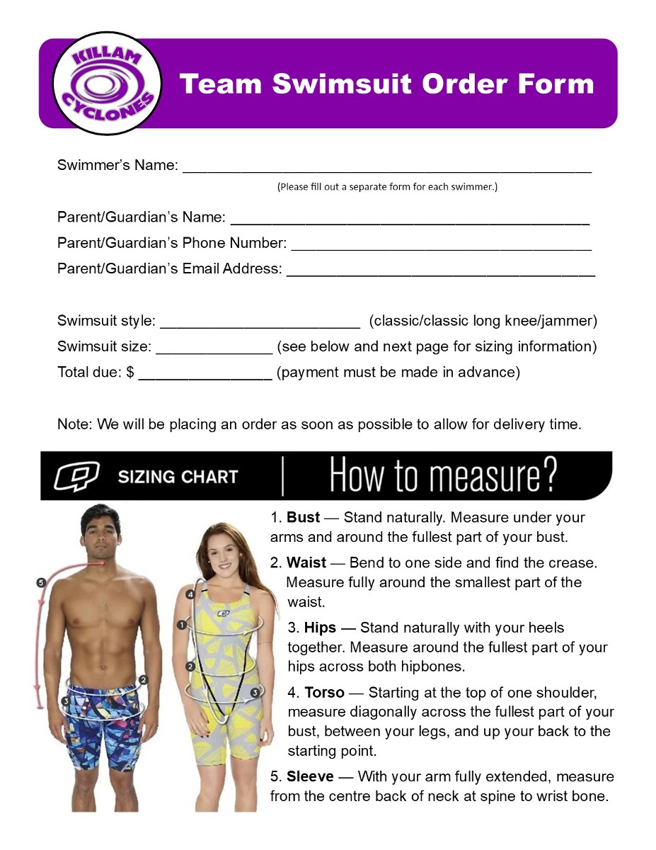 Please note that all team swimsuit orders must be in by this Monday (March 20). This may be the only opportunity to order team swimsuits this year, so please message us your order as soon as you can. Thank you!