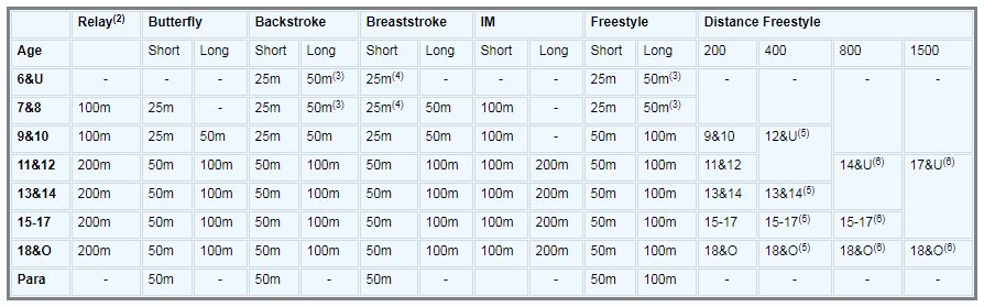 -Minimum qualifying time is 8 minutes in 400 m Freestyle, or 16 minutes in 800 m Freestyle or 30 minutes in 1500 m Freestyle