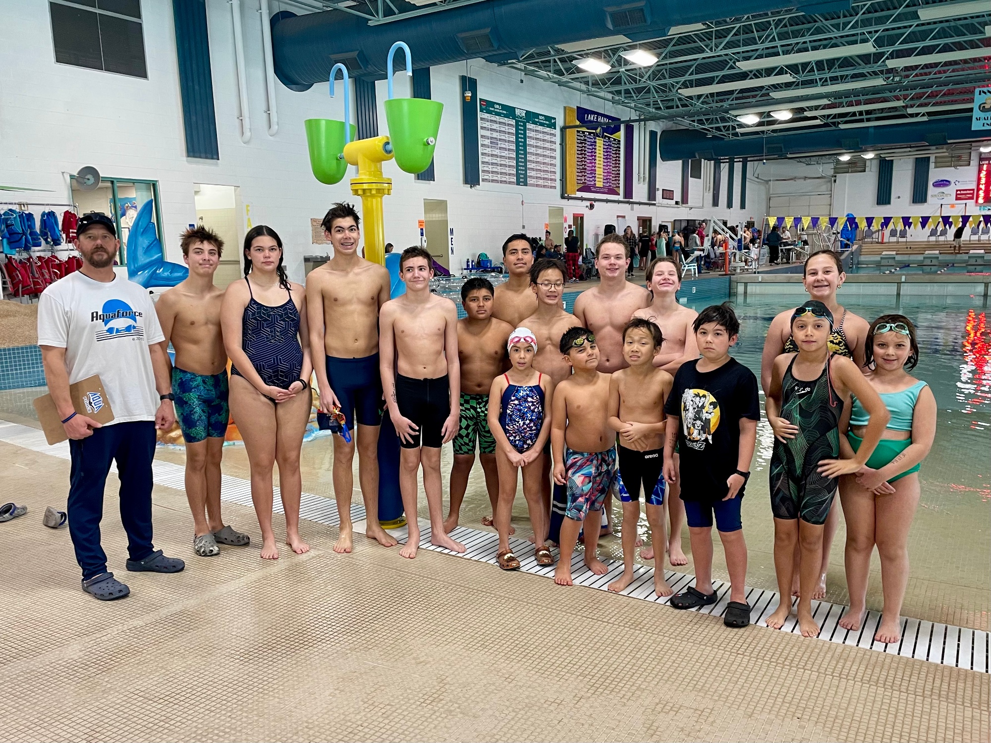 AQUAFORCE SWIMMING is a year round competitive swim team affiliated with USA Swimming. Our atheletes are of all levels of swimming expierence starting from beginner to advanced. Our swimmers are trained by certified coaches with a low swimmer to coach ratio in a setting that promotes a healthy competitive environment and a pathway for your swimmer to enjoy the sport at any level, including national competitive swimming. Swimmers are instructed to improve and refine technical swimming skills, physical conditioning, health and nutrition, and mental strength, while teaching a love of the sport for lifelong swimming success. Athletes have the opportunity to compete throughout Arizona, surrounding states, and beyond. We offer a one week free trial period for swimmers interested in joining our team. For more information regarding our team review our AquaForce Handbook located in the tab at the top of the page or contact Coach Mark Dusek @ 928-785-6106