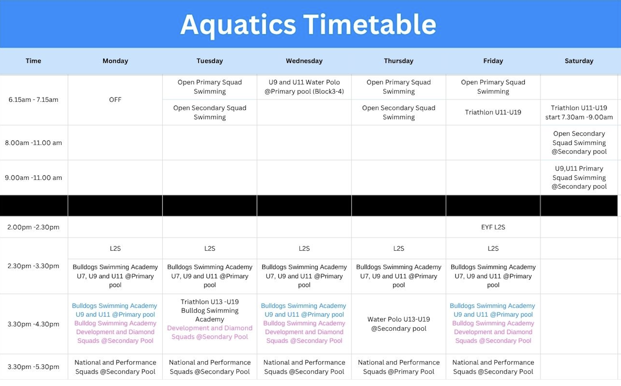 Training Timetables