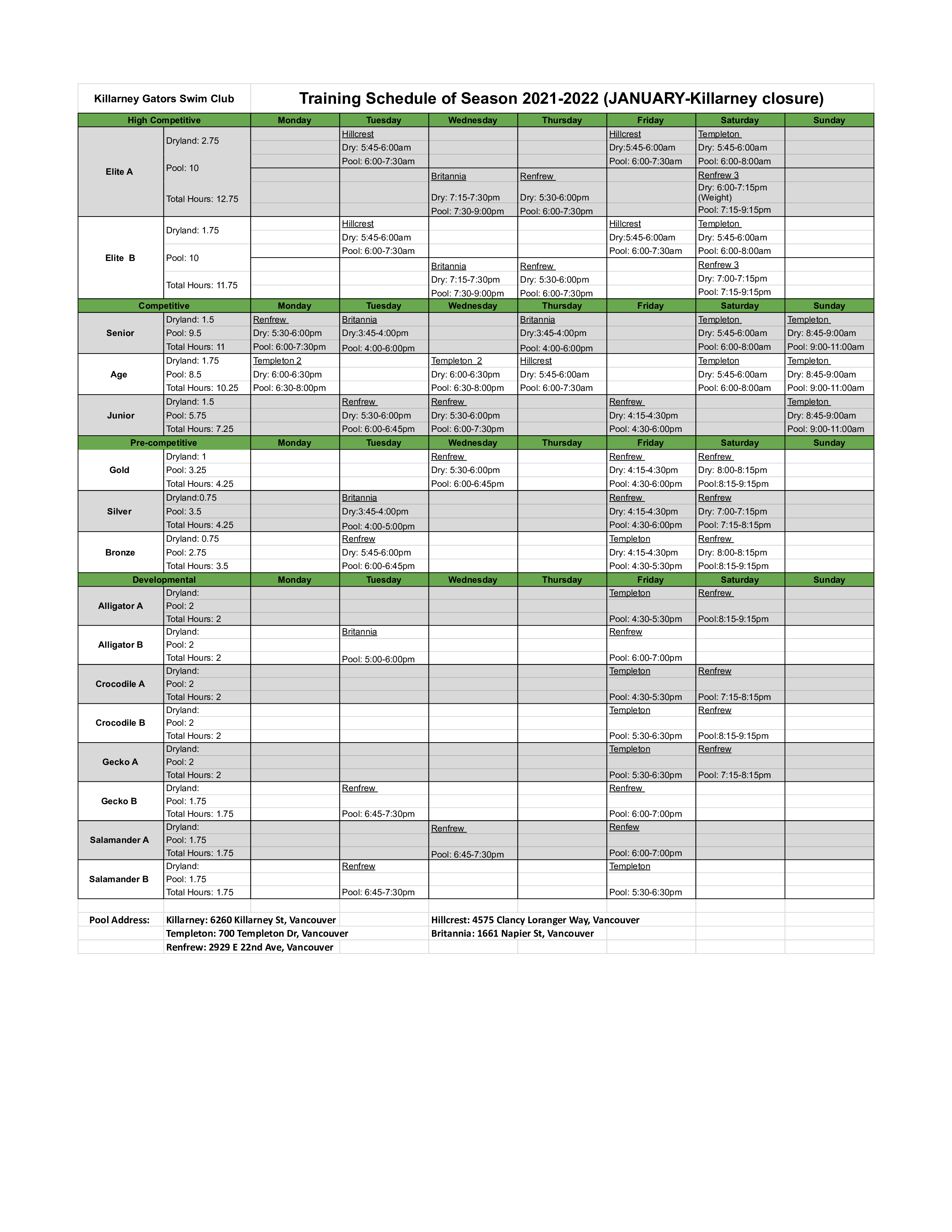 Due to the Killarney annual maintenance, we have temporary training schedule as below.