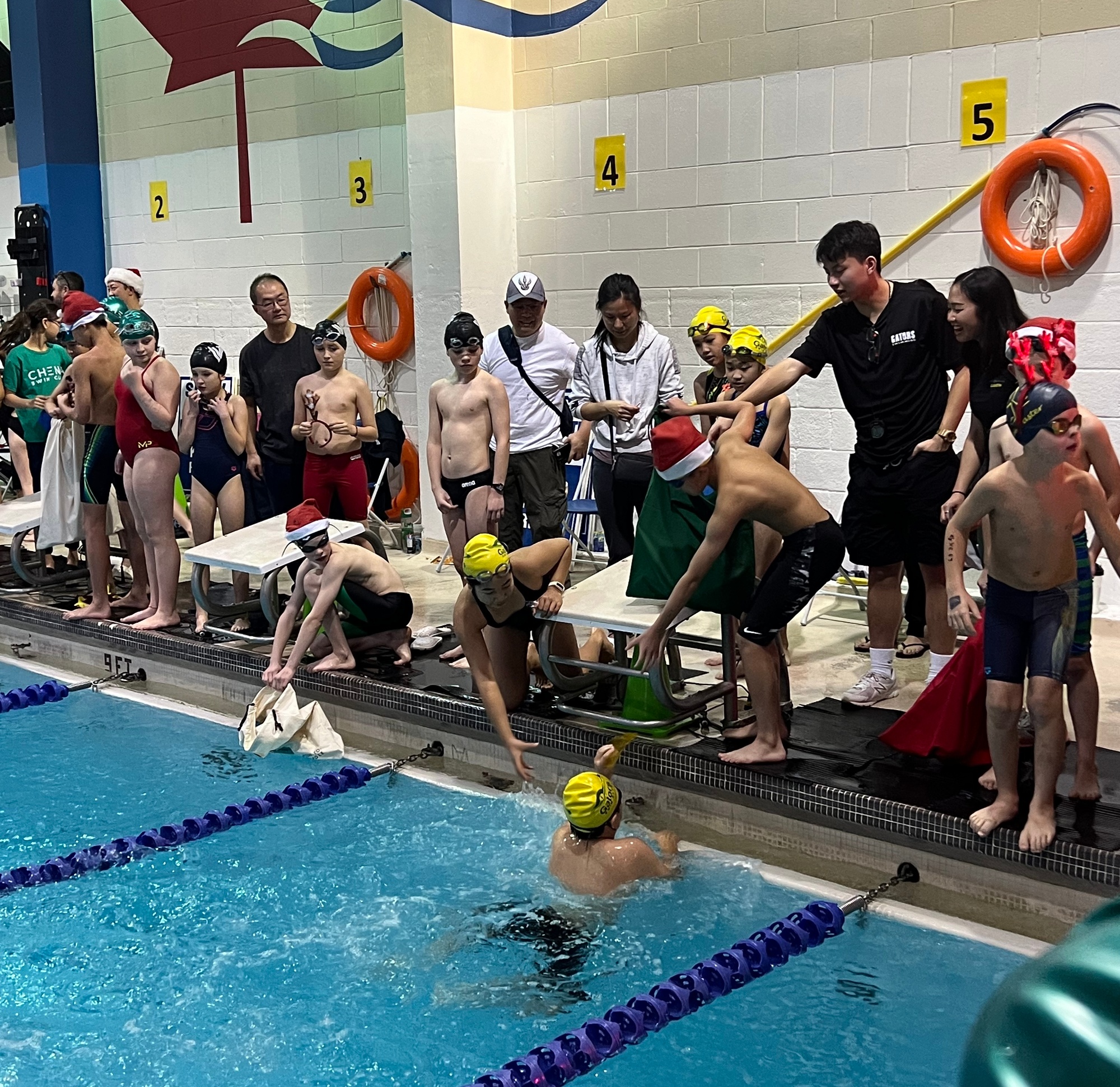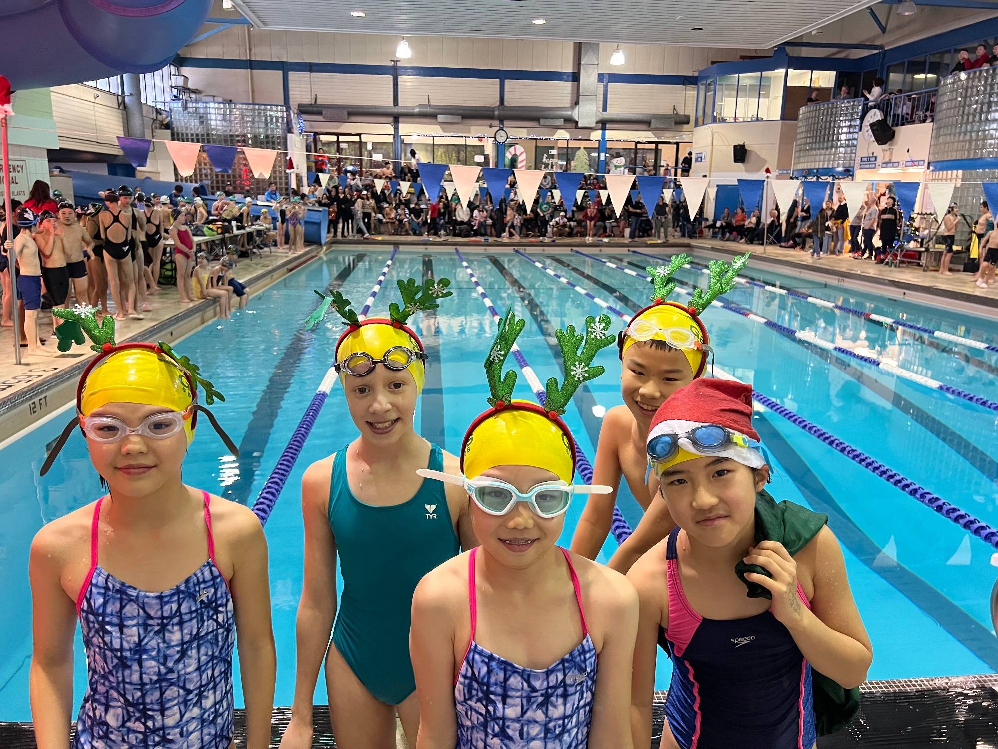 Our Junior, Gold, and Silver swimmers did a great job while having lots of fun. We participated in the Santa Relay where our first four swimmers were Santa's reindeers and lastly, Santa brought all the presents back to the other end of the pool. This festive twist to traditional relays brought swimmers, coaches, and parents lots of laughter and overall enjoyment.