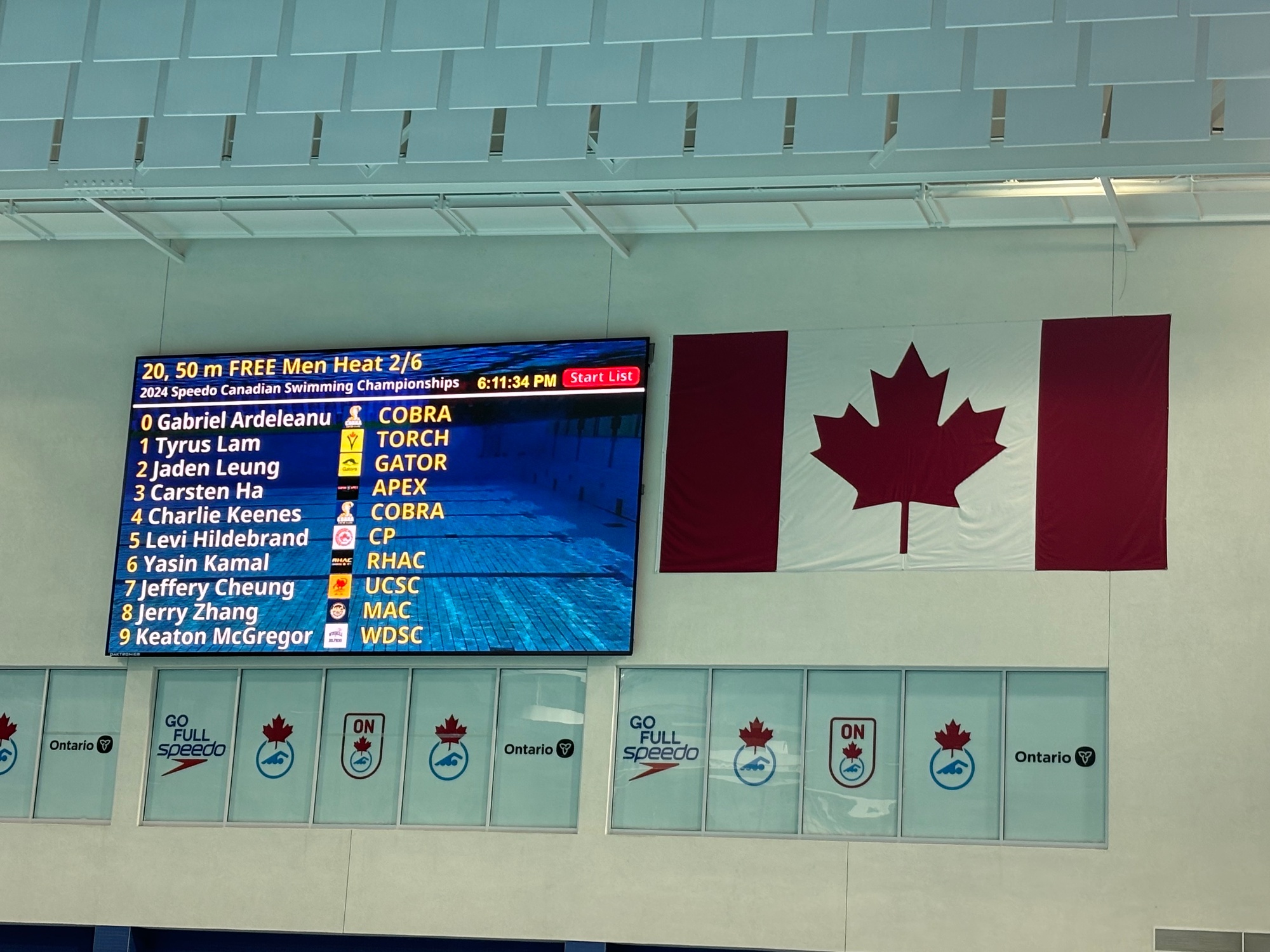 The 2024 Canadian Swimming Championships, held at the Toronto Pan Am Sports Centre from July 24-30, was a remarkable event featuring 928 athletes from 149 swim teams across the nation. Jaden Leung represents Gators had an impressive performance in his three events: the 50m, 100m and 200m freestyle.