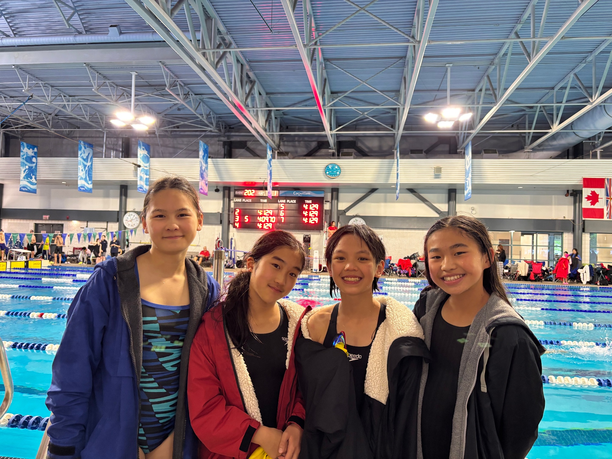 • 12&U Girls (Grace Ho, Hallie Ng, Kadence Wong, Alicia Zheng) - 4x100 FR relay – 4:59.37