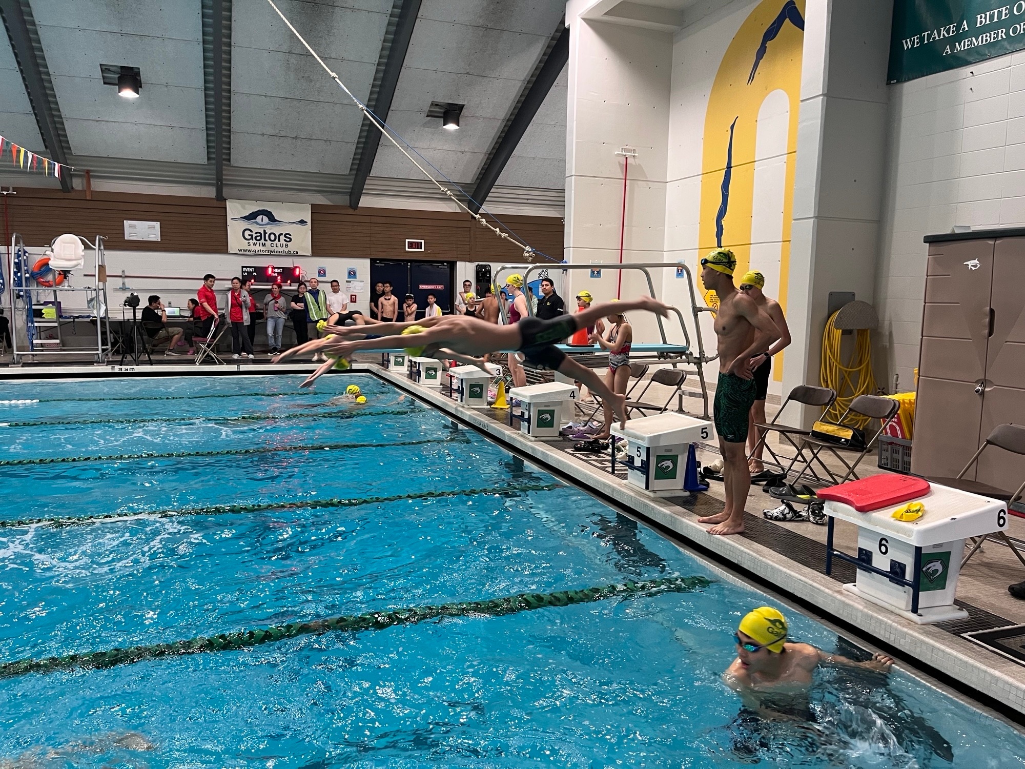 On Sunday. June 22, 2025, Gators swimmers ranging from development to competitive groups attended the Gators Annual Time Trial at Templeton Pool. Every swimmer swam their hardest and strongest, demonstrating what they learned and their hard work from this season. For this time trial, swimmers were split into 4 teams to form a spirited team environment between swimmers from all groups. Each team cheered hard for one other during events and relays. During the end of relays, the coaches joined their team for relays and also swam a coaches medley relay against swimmers. This final time trial wraps up the season for development swimmers. Competitive swimmers will soon be attending Divisionals and Provincials. Have a great summer everyone!