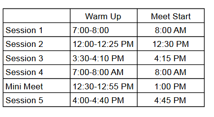 Mini Meet Warm Up Assignments