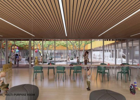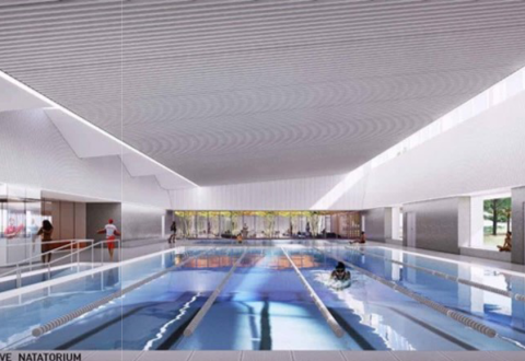 The zero-carbon facility includes an aquatics centre with a six-lane lap pool and leisure pool, two NHL-sized ice rinks, spectator seating, an artificial turf fieldhouse with running track, a multi-use community space and universal washroom and changerooms. Outdoor amenities include a large courtyard with direct access to social and community rooms, with future plans for the site including connections to the Oak Ridges Moraine trail system and outdoor sports fields.