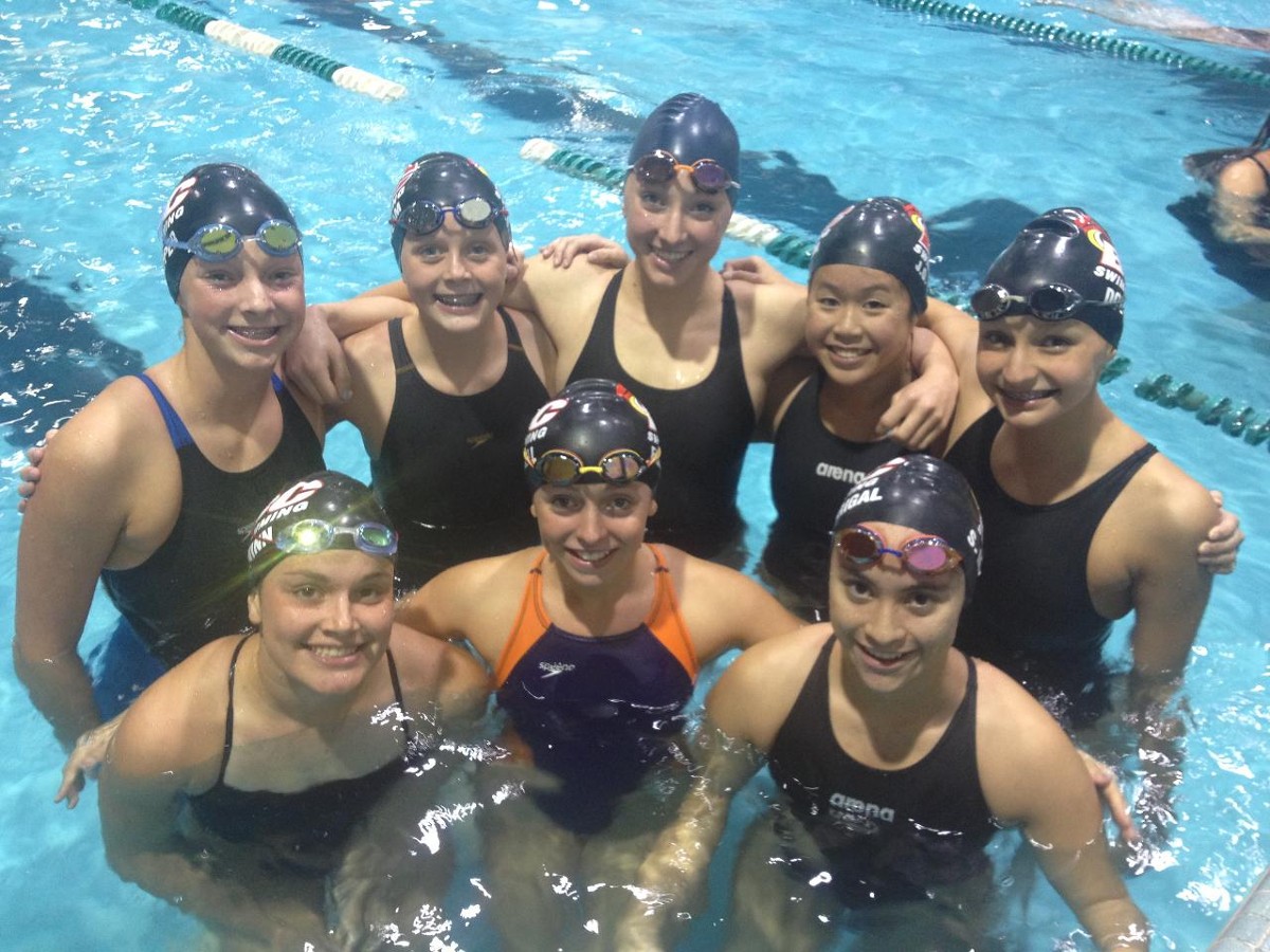 As always the relays were exciting and didn't disappoint. The Boys 11-12 200 Yard Free Relay featured Ethan Smith, Sean Keegan, Caleb Gorman, and Ethan Endicott. The boys dropped 4.33 seconds off of their time and finished one place lower than they were seeded for 15th overall. The Girls 13-14 Yard Free Relay featured Jennie Bao, Lauren Nielsen, Mary Taylor, and Kathryn Doyle and the girls dropped .83 seconds off of their seed time for a 17th overall finish. The 13-14 Girls 400 medley A team featured Kathryn Doyle, Sophie Kuehler, Haley Winn, and Lauren Nielsen and the B team featured Riley Farrell, Jennie Bao, Sarah Madrigal, and Nikki Cooper. The A team finished 14th overall and the B team finished 17th overall (dropping 2 places from their seed time) and dropped 1.51 seconds for a best time of 4:23.85. Great effort to all of the swimmers that represented Beach Cities in the relays tonight!