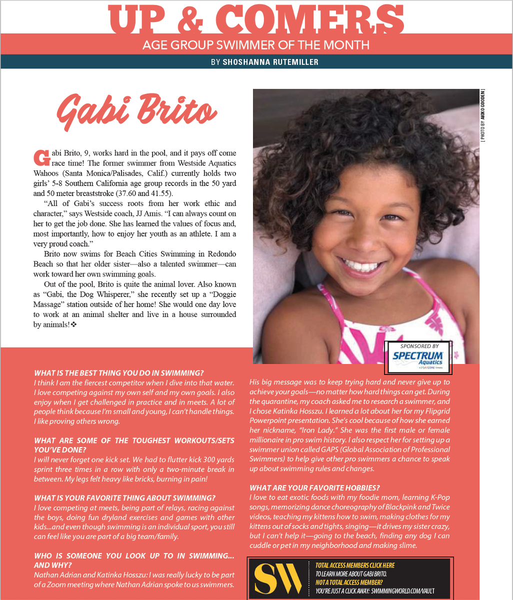 Gabi Brito Named Swimming World Age Group Swimmer of the Month! (September 2020)