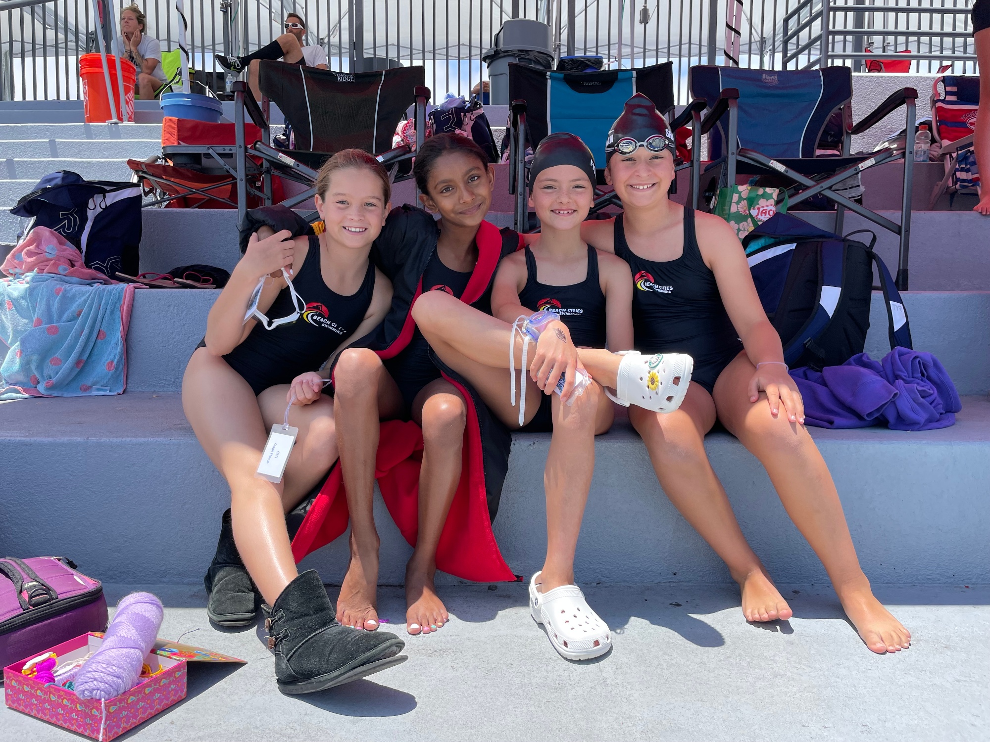 The midday sessions were sunny, fun and fast! It is an early season champs meet and the kids were either still in school or just finishing, so it's a weird time of year for a meet like this. This group did a really nice job. I was super pleased at how they supported one another and how they conducted themselves at this meet. Great attitudes and great efforts all weekend long. Way to go Beach 3!