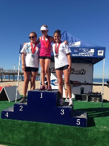 Congratulation to Junior Olympic swimmers Peyton Heiden and Sierra MacDonald who placed in the Top 3 at the Hermosa Beach Triathlon on October 5. Both girls did an outstanding job with Peyton finishing 1st & Sierra finishing 3rd in the girls 14-17 year old division, although they are both only 12 years old. The race included a 1/4 mile ocean swim, 10 mile bike and 3 mile run. Here are some highlights and stats from the race: -Peyton placed 1st overall in Girls 14-17 year old division & 47th overall...