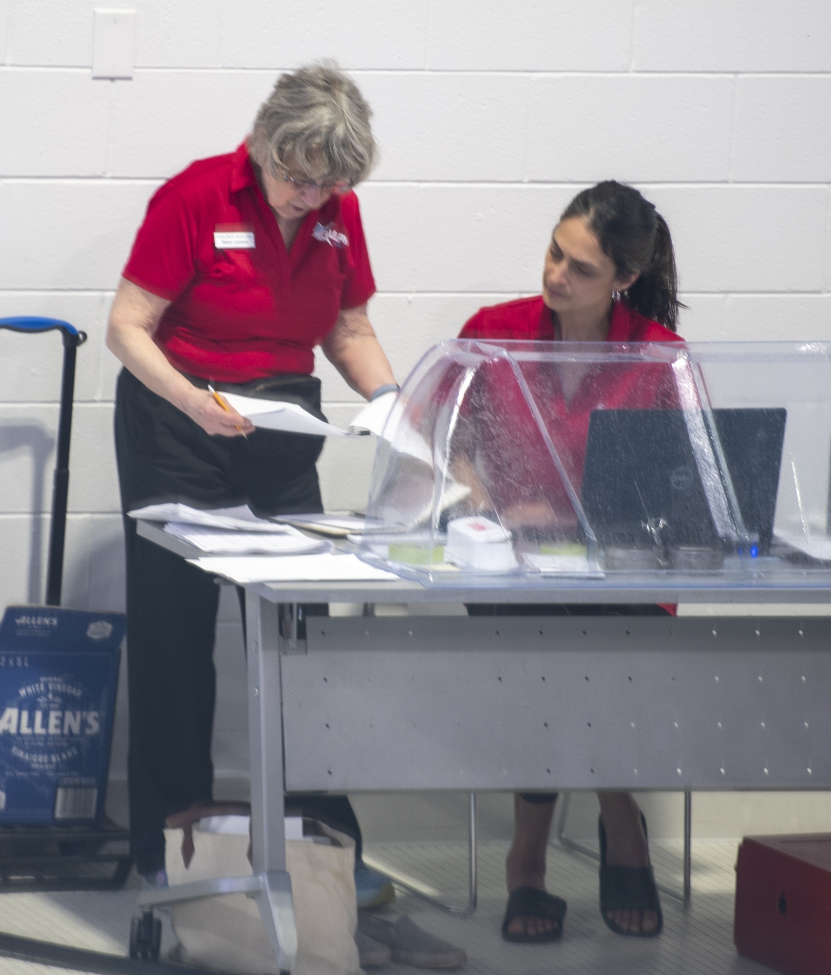 The CLERK OF COURSE/ADMIN DESK CONTROLLER greatly contributes to a well-run meet. The clerk of course checks swimmers into the meet, "scratches" swimmers that are absent or do not intend to swim an event, and seeds swimmers according to their entry times. The clerk of course may also shepherd swimmers from a staging area to the starting blocks. Generally they may have 1 to 2 marshalls working with them.