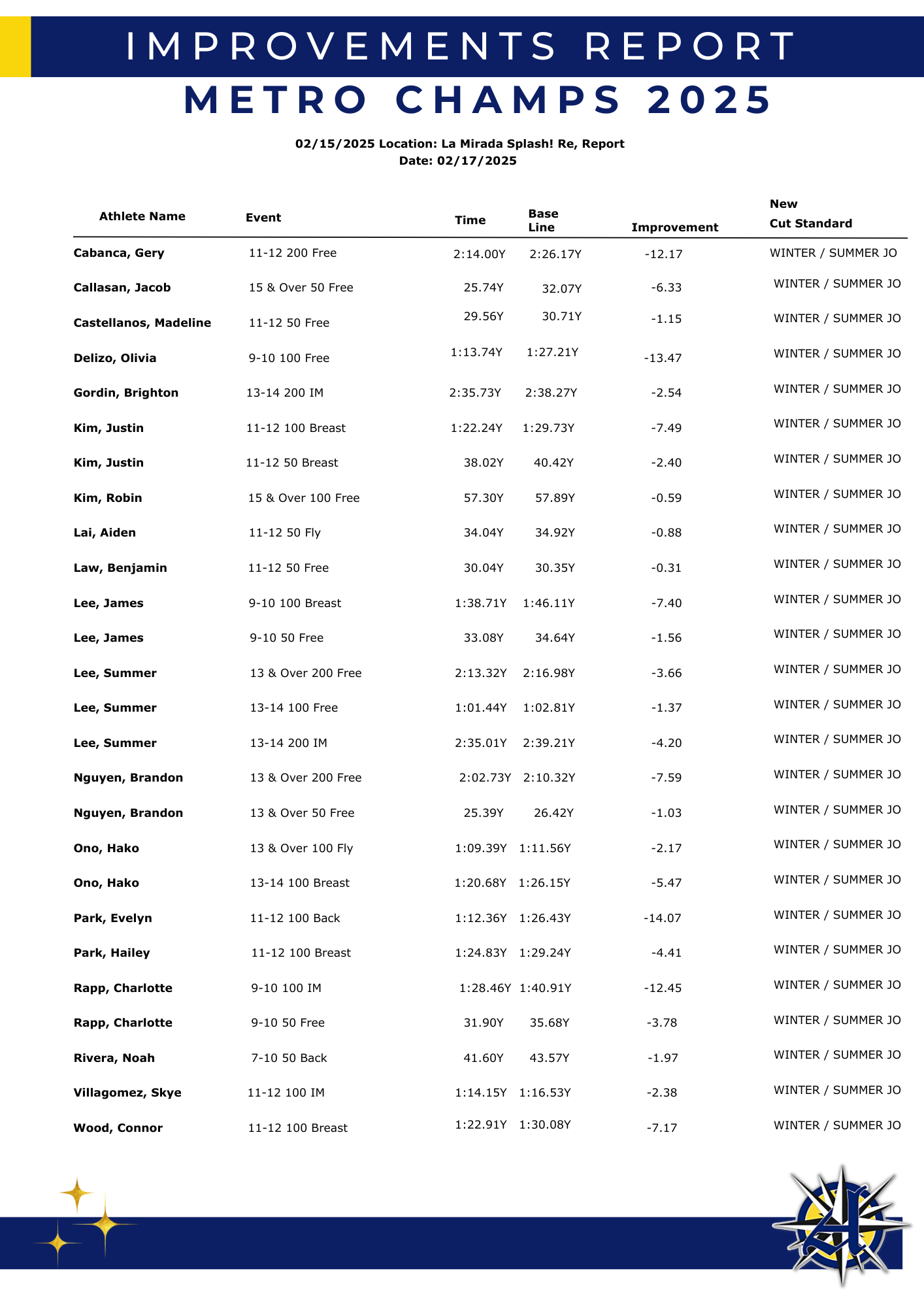 The La Mirada Armada Swim Team made a splash at the 2025 Metro Championship, with 19 swimmers achieving qualifying times for both Winter and Summer Junior Olympics (JO)! Competing against top talent, these dedicated athletes showcased their hard work, determination, and team spirit throughout the meet.