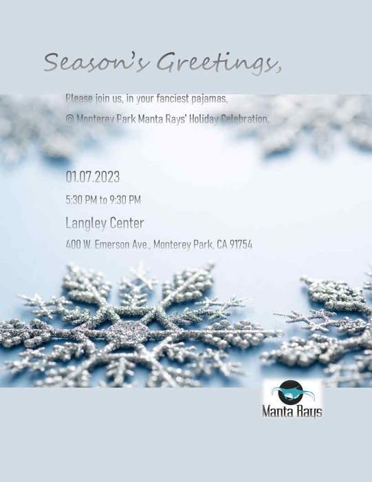 Please join us, in your fanciest pajamas @ Monterey Park Manta Rays' Holiday Celebration.