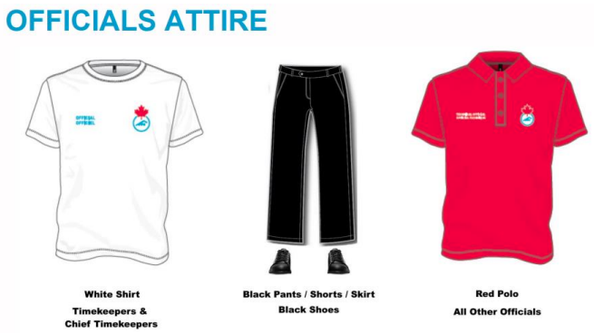 Officials on deck at any sanctioned Swim Alberta competition should be dressed according to the Officials Dress Code