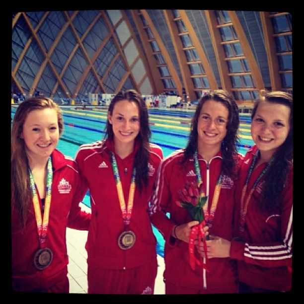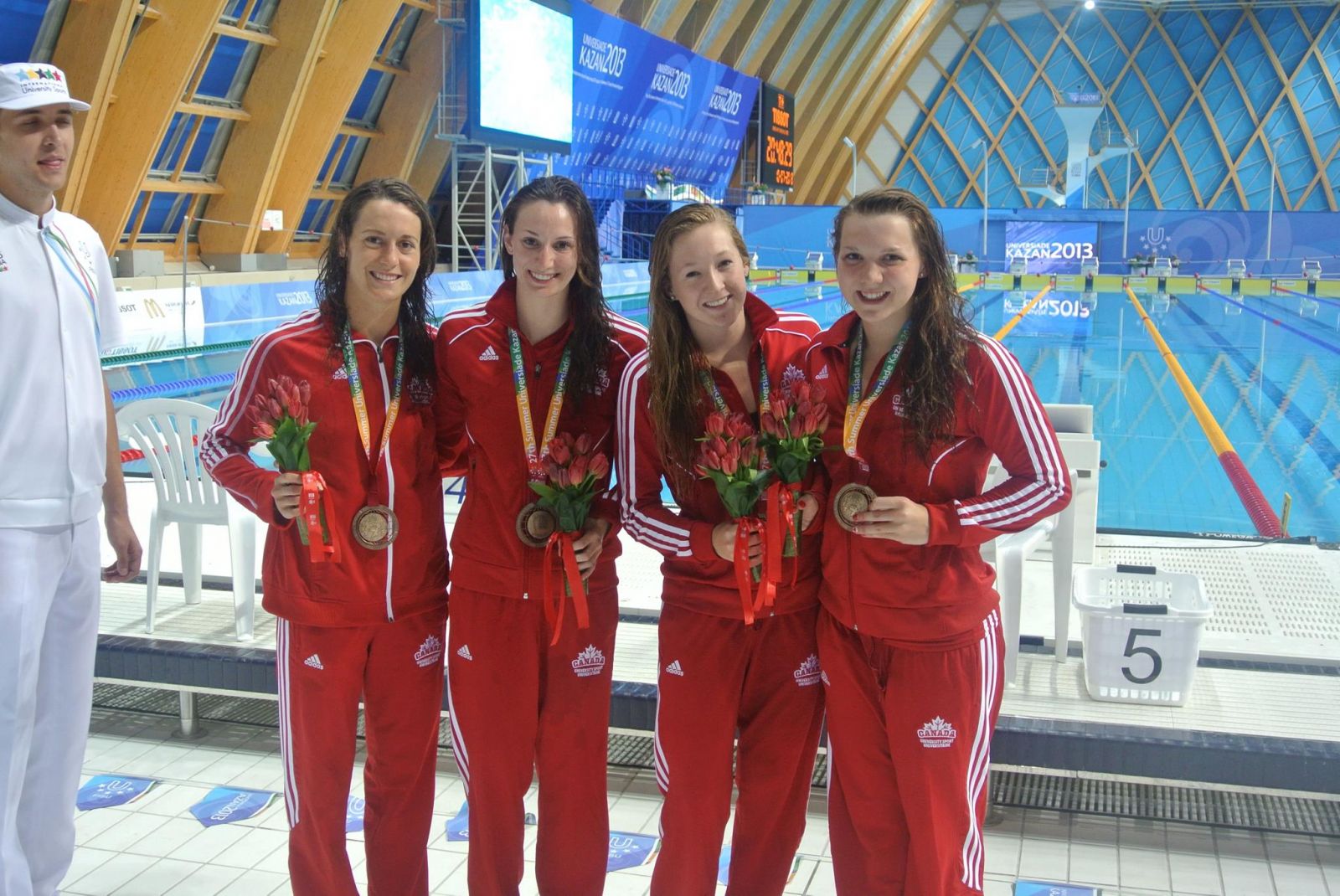 On day 1 at the World University Games in Kazan, Russia TSC swimmer Paige Schultz and three teammates won Canada's first medal in the pool. Schultz was joined by Brittany MacLean, Caroline Lapierre Lemire, and Sandrine Mainville on Canada's 4x100FR relay team that went 3:40.71, which was good enough to win a bronze medeal!