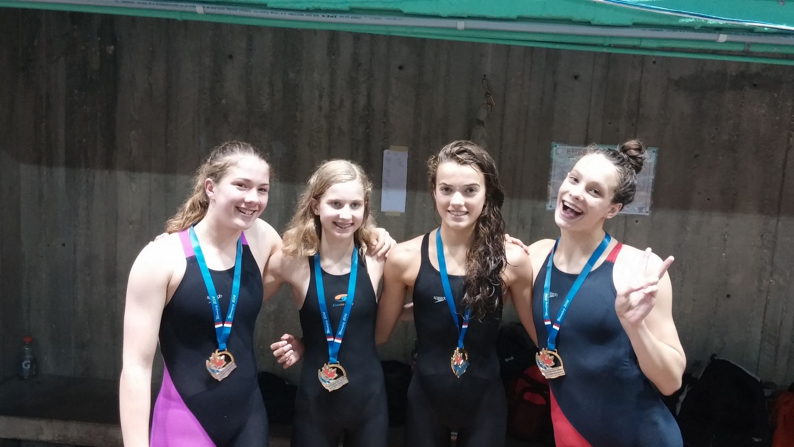 Congratulations to TSC's women's 14&under 4x200FR relay at the Canadian Age Group Championships in Winnipeg! Penny Oleksiak, Aleksa Gold, Emma Binns, and Christiane Konstantopoulos teamed up and claimed gold on Thursday night, clocking in at 8:38.53, which earned the girls a new National Age Group Record!