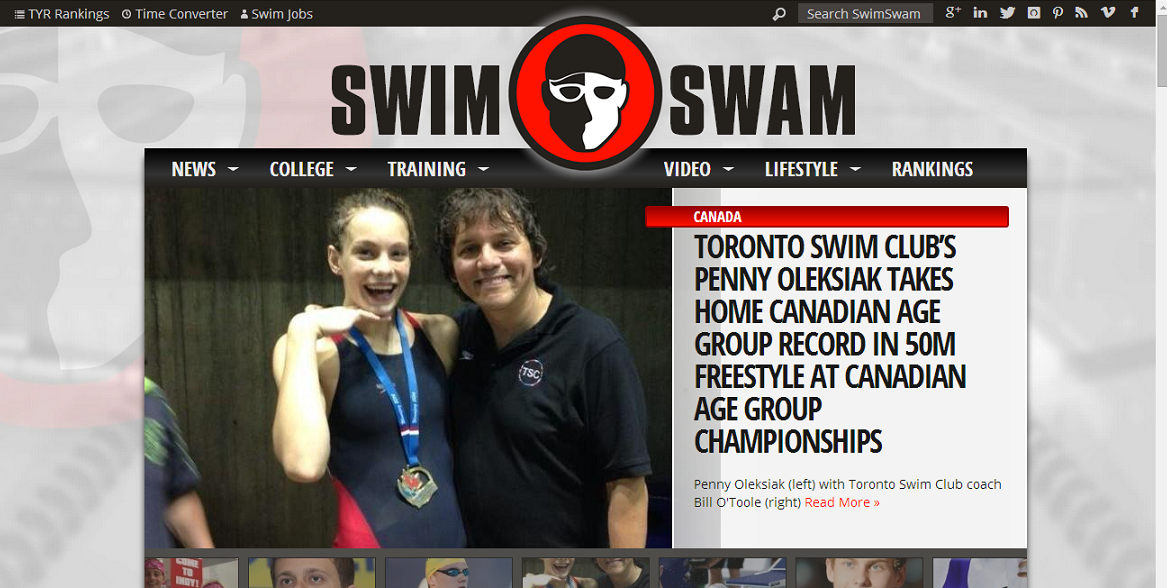 Oleksiak's performance is making huge waves in the swimming community, splashing the news as the lead story on a number of swimming information sites.